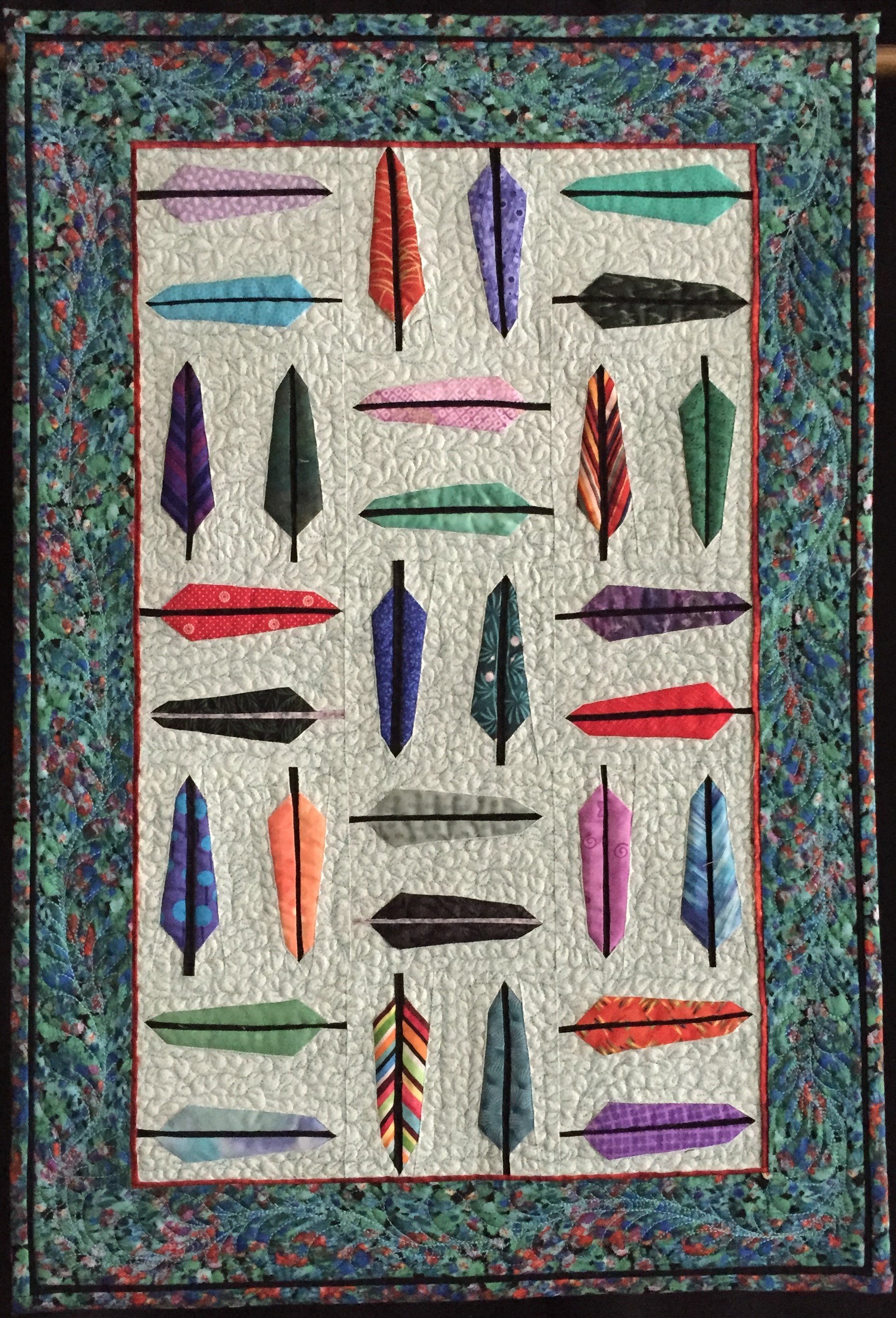 dreamquilter A miniature adaptation of "Feather Bed," a quilt designed by Ana Maria Horner (anamariahornerblogspot.com). The original pattern uses strip-pieced units for the feathers. Since I wanted a mini, I used whole pieces of fabric for the sides of the feathers and 2" by 4" blocks instead of 4.5" by 9" blocks. These measurments enabled me to keep within the miniature quilt guidelines for quilt shows. I re-sized it in Electric Quilt 7. It won a blue ribbon in the Lone Star Heritage Quilt Guild Show, 2015 and a blue ribbon and Judges's Choice in the Mineola League of Arts Show, 2015. I have made one full sized feather block from the pattern and plan to make a full-size quilt.