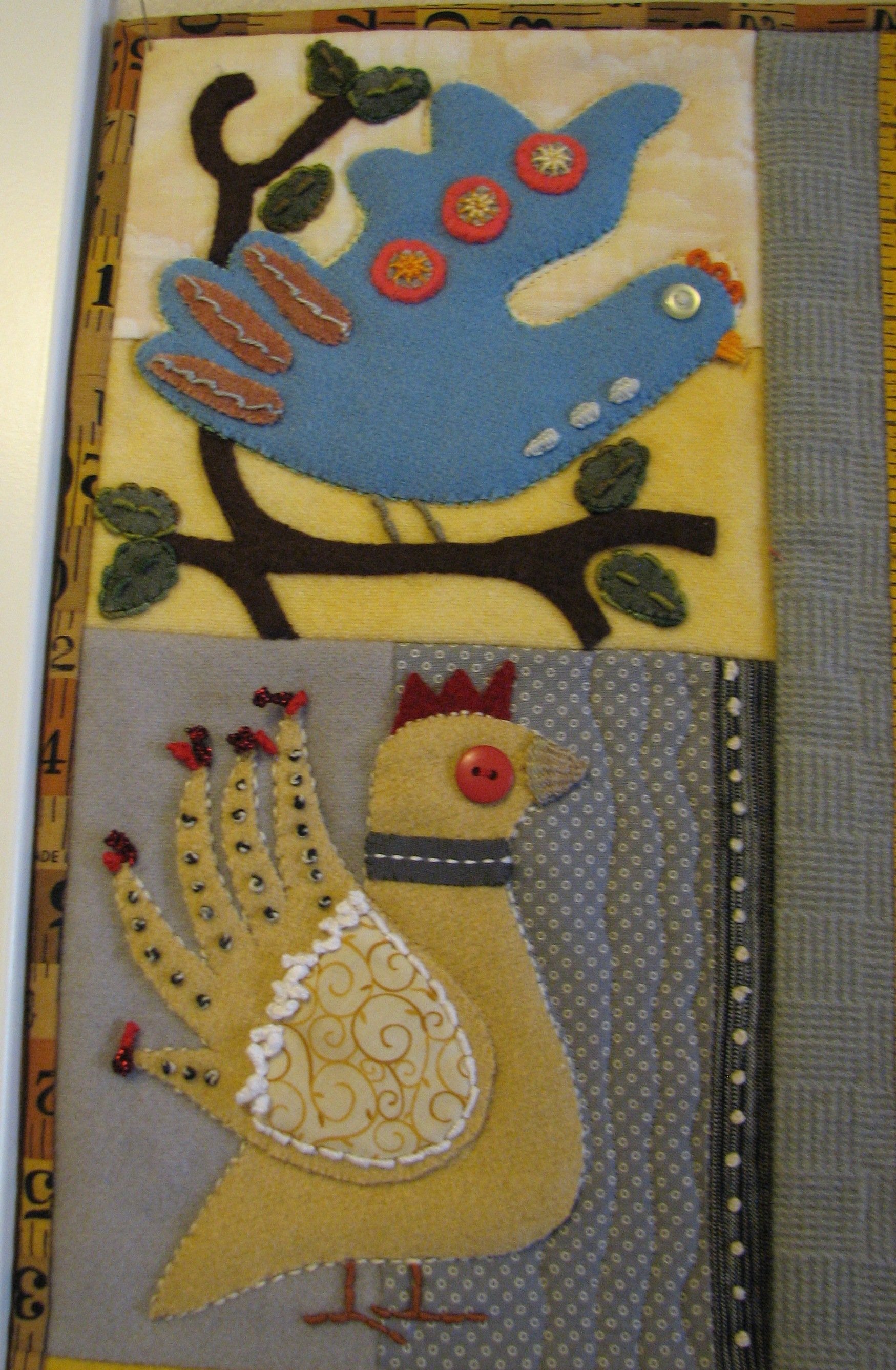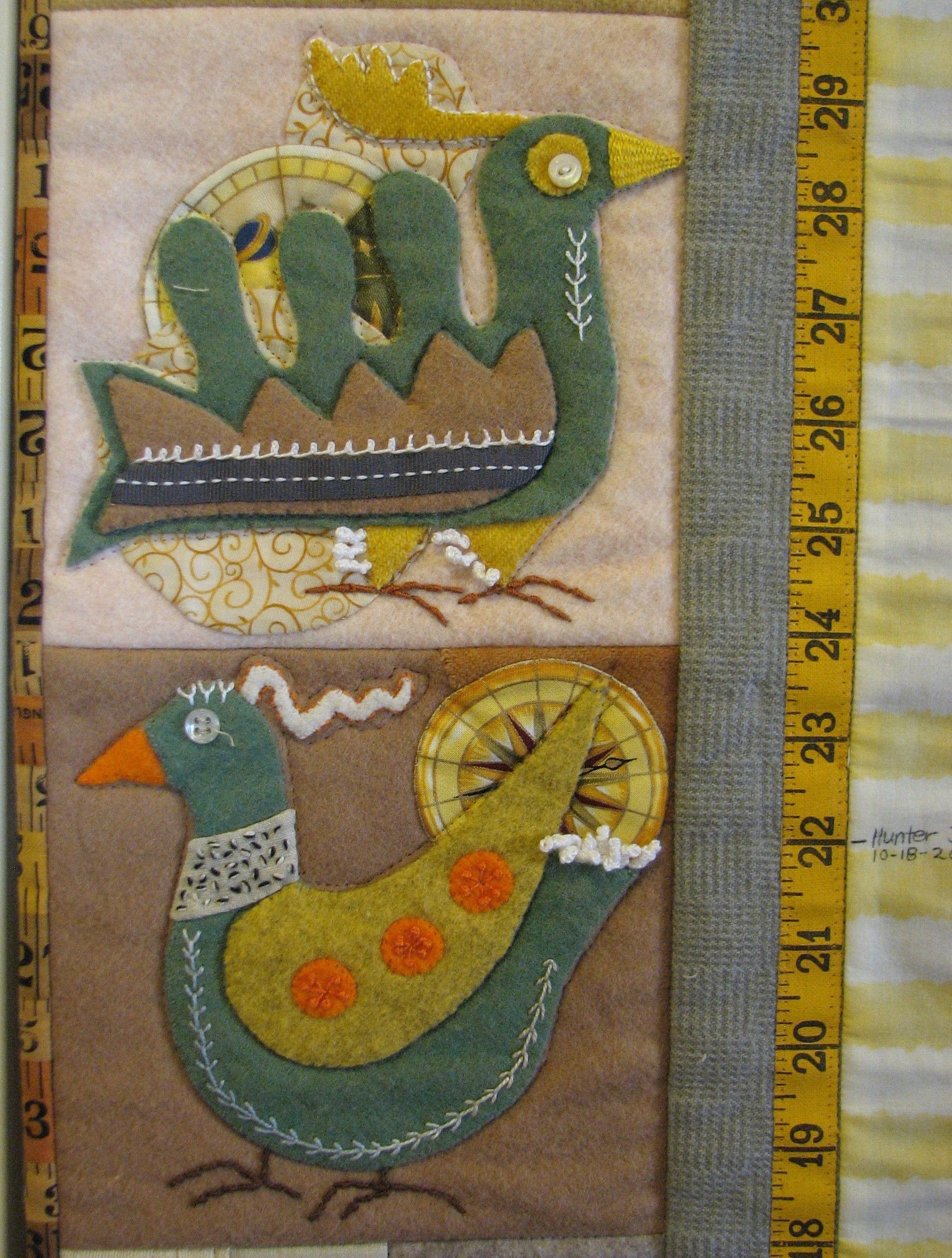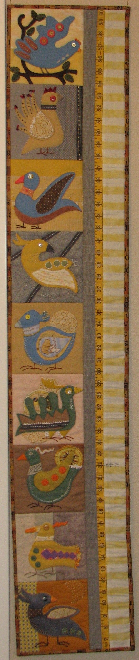 Growth chart made for my grandson using Sue Spargo's techniques and Bird Dance book.