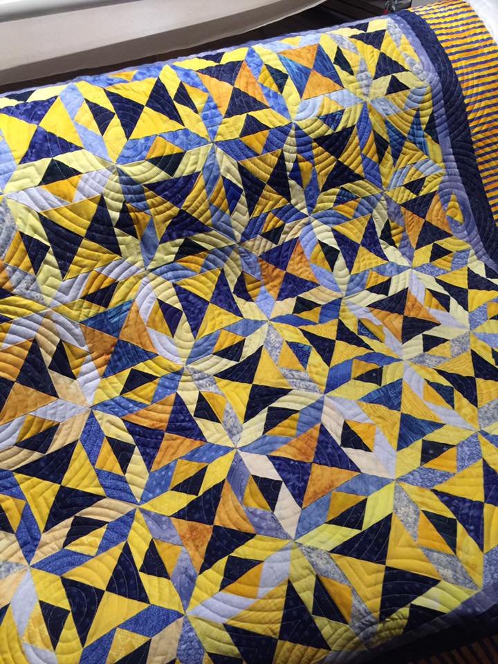 I made this quilt top in 2005. It was made with blue and yellow scraps from my own scrap bag, as well as scraps from fellow quilters, and a few fat quarters. I paper-pieced it from a pattern from Anita Grossman Solomon. I FINALLY got around to quilting it because I recently bought a long arm machine, and started with all my old UFO's. I named the quilt after a song by The Judds.