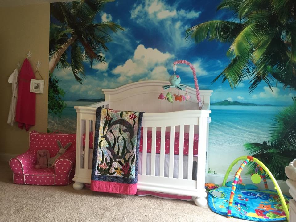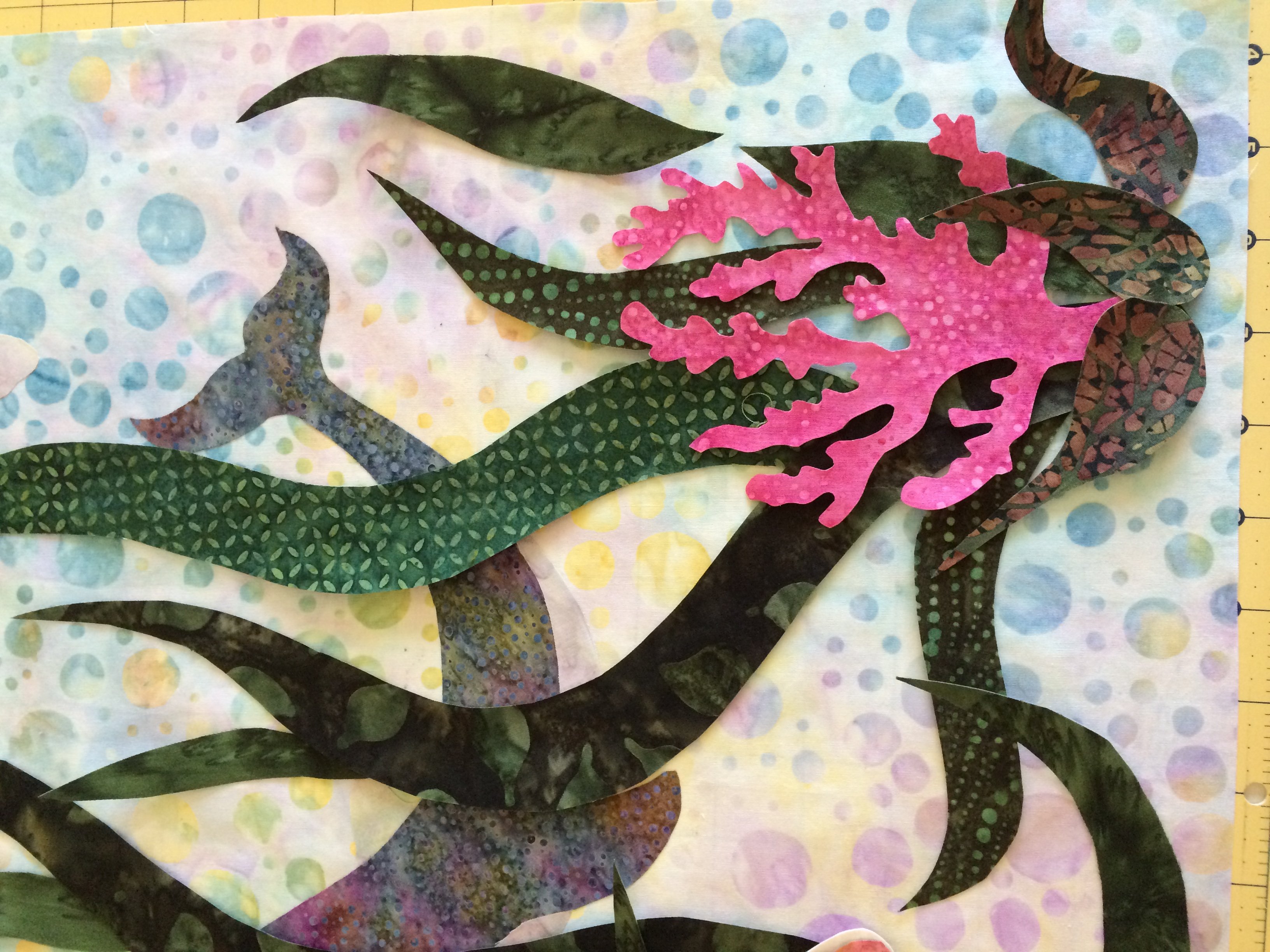 Little Miss Savanna was born on Easter Sunday. I made this quilt for her 'birthday' based on the theme that her Mom & Dad had used to decorate her nursery. It's crib size, personally quilted on my Bernina 830 and the raw edge applique design is an original done in all batiks with a bright pink Minky for backing.