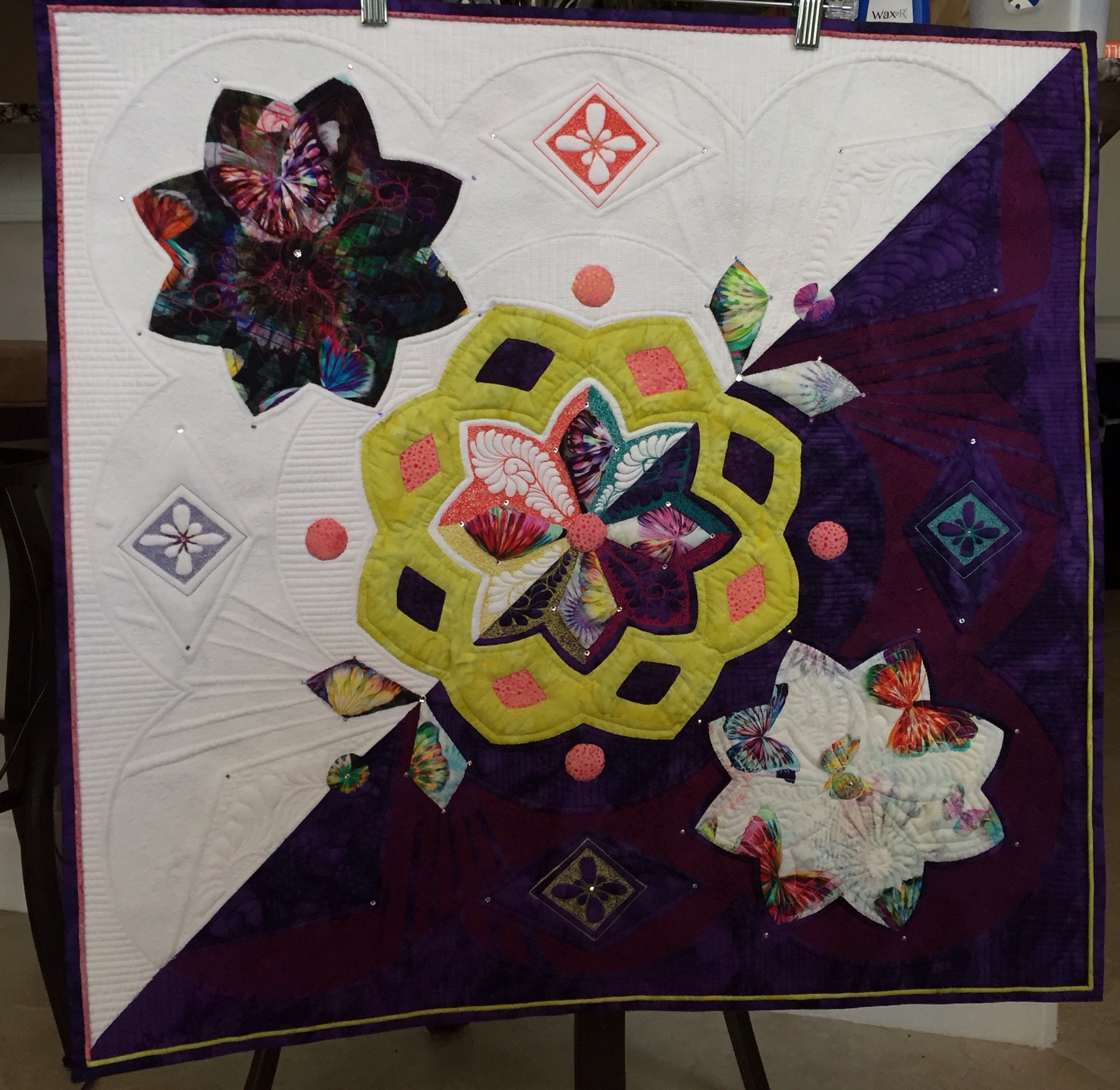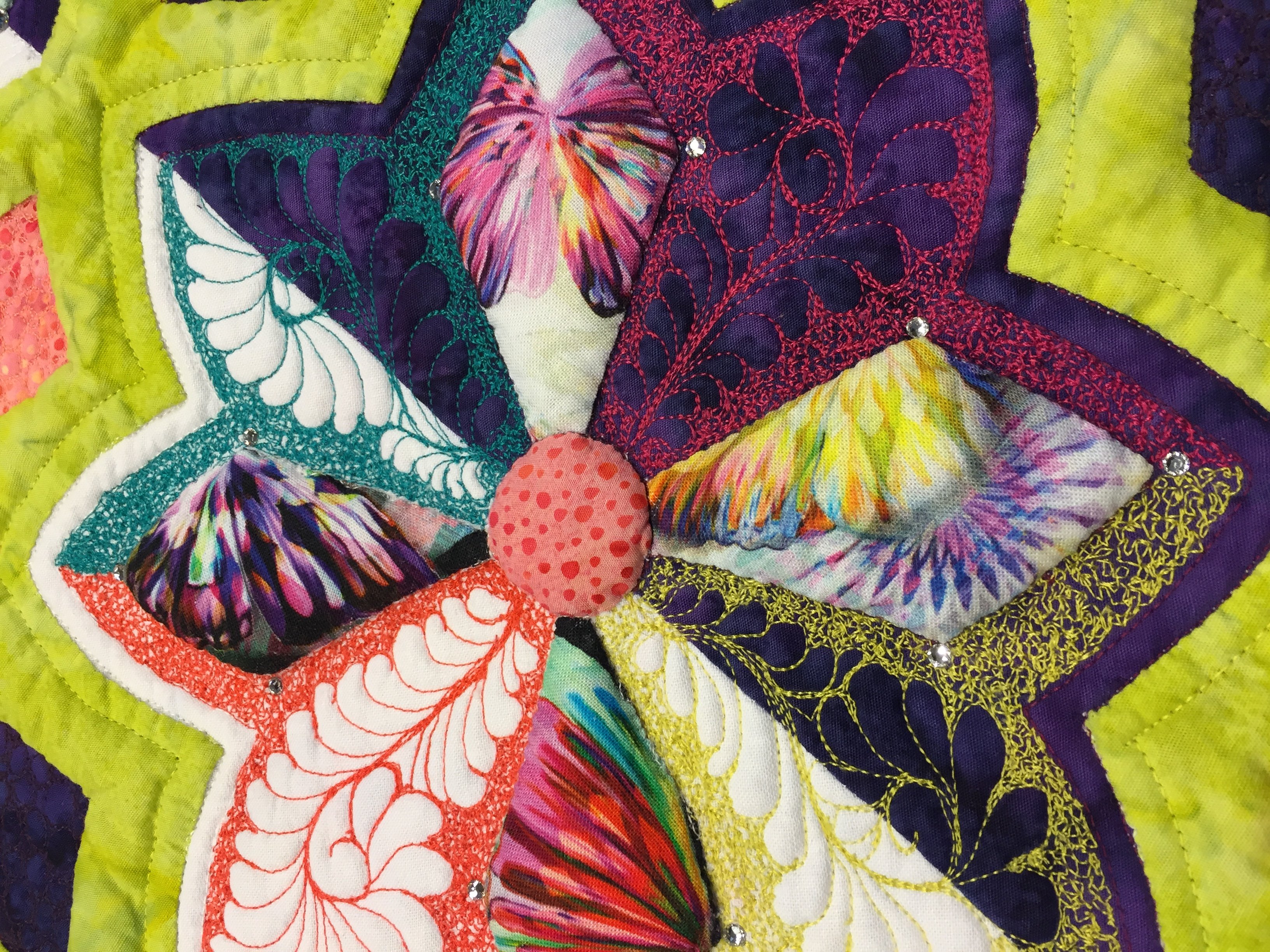 This is the 2nd place winner for the 2016 Hoffman Challenge I created and dedicated to our family dog "Lucky" of 19 years. She passed away during the making of this quilt which led me to such intense quilting. It's amazing what we can do when our minds are distracted with such wonderful memories of a family furry member! I love you still Lucky!