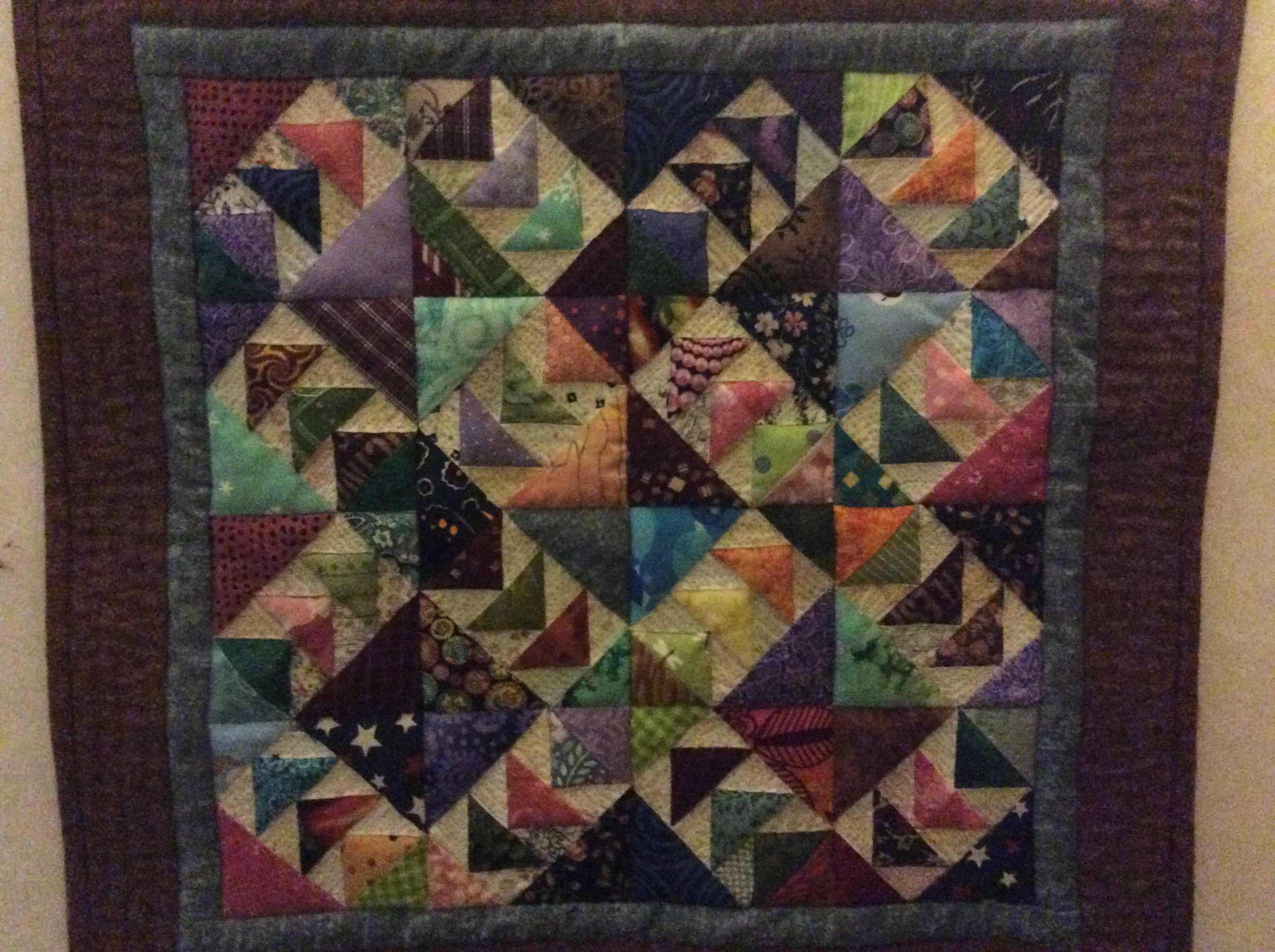 Made a few blocks during the flying geese craziness on Bonnie Hunter's Open studio. My hat's off to those who made a full quilt! I quit at 16! Makes a nice little wall hanging. If you bought her video teaching this block, it is in the gallery. Good way to use small scraps.
