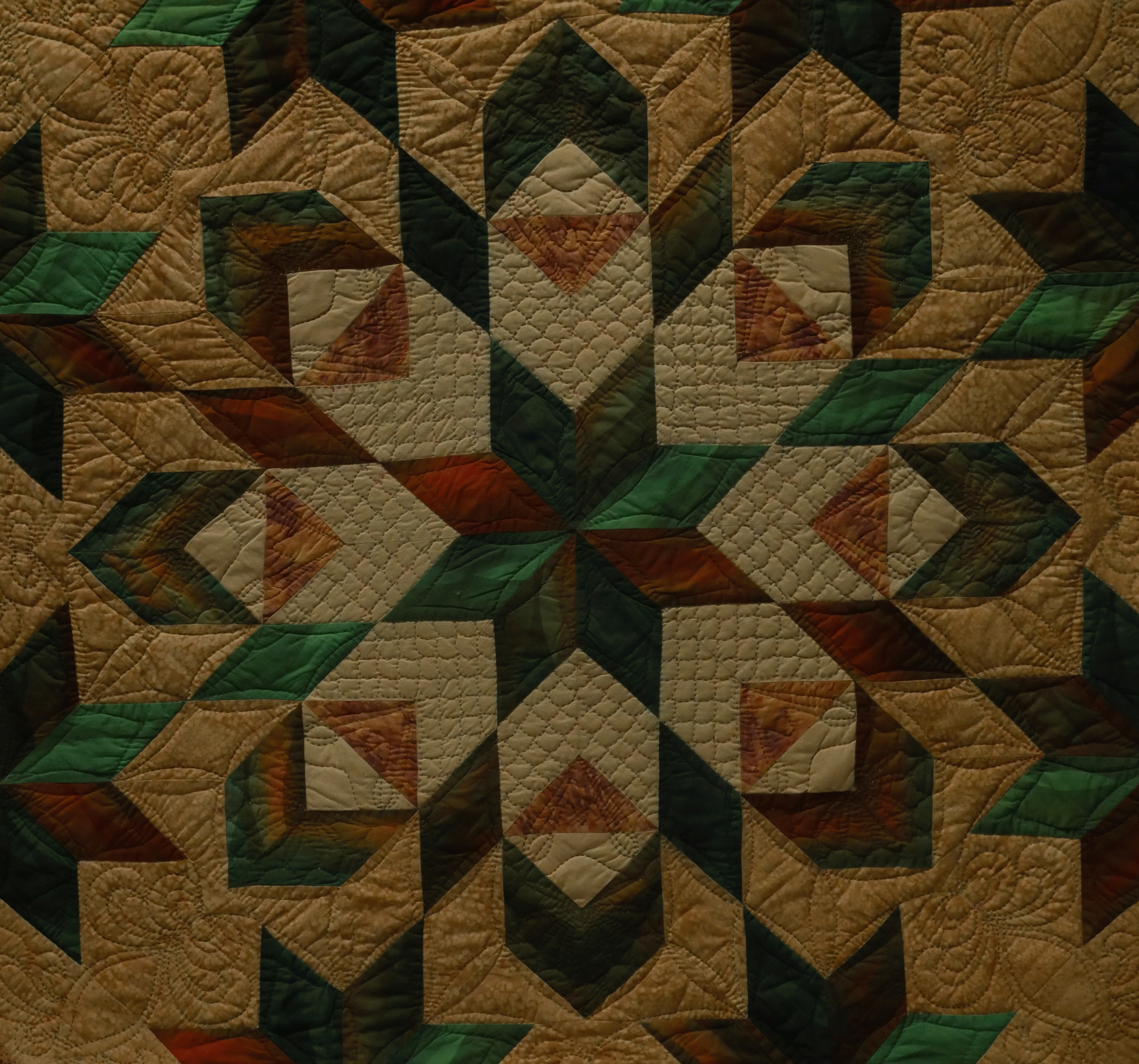 Your quilting is stunning as well. Your quilting design is a perfect match for the quilt design to enhance it without overpowering it. And it was hand quilted? Wow!