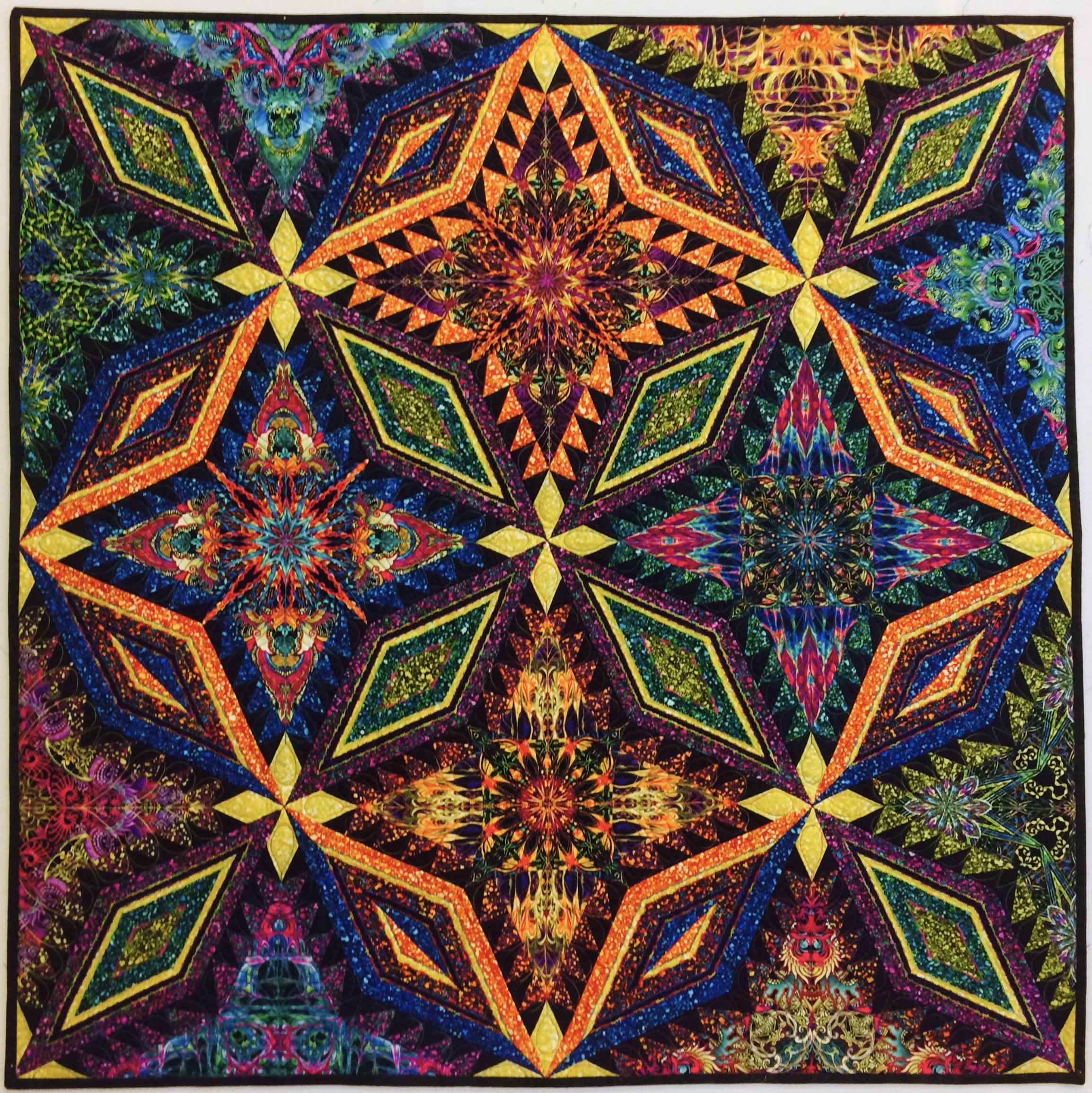 This is a sample quilt created for Quilt Market 2016 in Houston to feature Paula Nadelstern's new Kismet fabric line from Benartex.