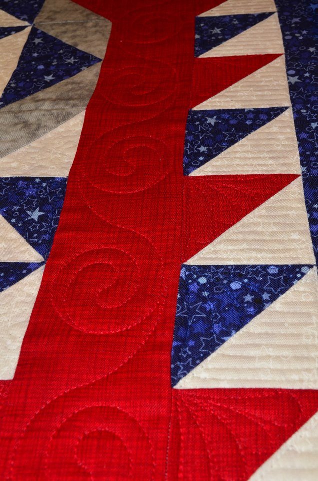 Enchanted Evening Star was a quilt I designed as a Quilt of Valor quilt pattern. The All Hallows block is repeated in this quilt . It can be made using jelly rolls, fat quarters, or yardage. It is made using HSTs. The pattern is available for download at McCalls Quilting.