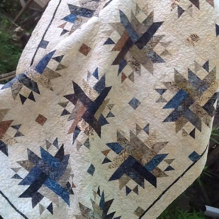 One of my favourites. Made for my son and his bride 3 years ago. A free moda pattern but I added smashing and cornerstones. Rita Bertling.
