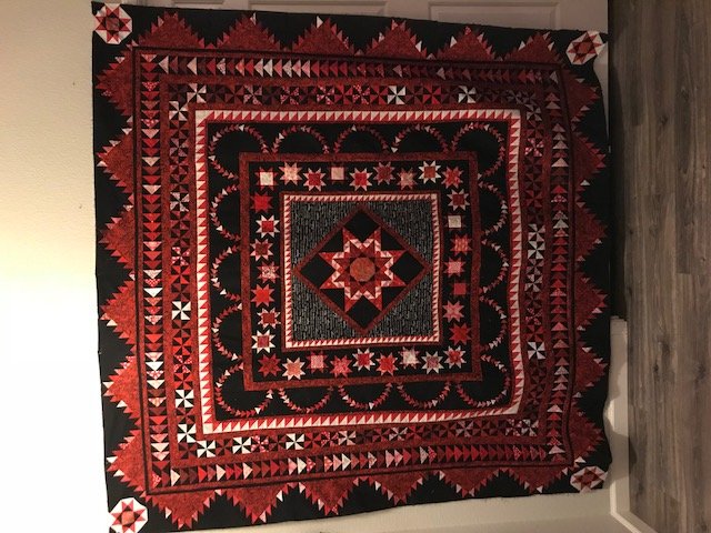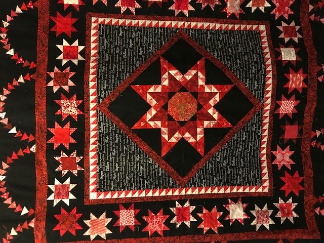 2017 BOM, done in Black, Red & White. I also call it the 'free' quilt becasue no 'new' fabric was purchased to make it - specifically for it! Ya know, sometimes Red just speaks and you must buy!