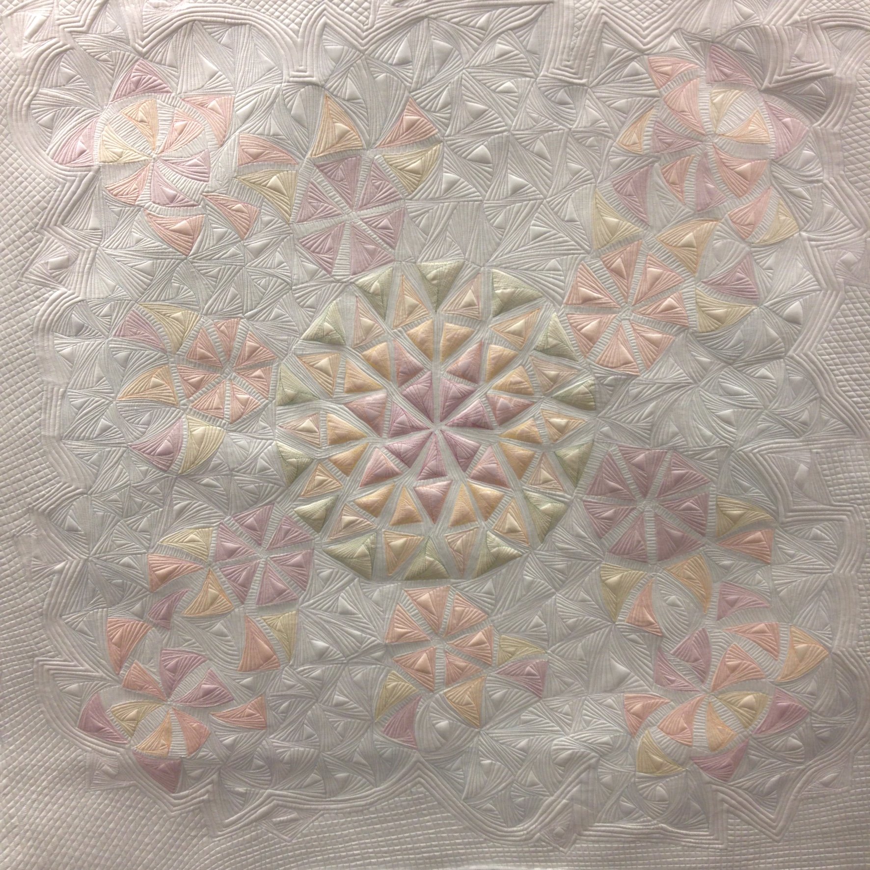 The difference between possible and impossible is perception. A long time practitioner of Zentangle I wanted to adapt tangles (patterns) to continuous line free-motion quilting. Several were simple, many took a little more work and others I thought were not possible. Altering my mindset from “impossible” to “I haven’t figured it out yet!” led me to discover how to quilt ‘tripoli’ one of the tangles featured in this quilt.