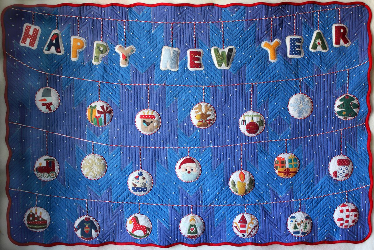 New Year's quilt for Quilt fest in Ukraine. Bright, colorful made in the form of balls on the Christmas tree. Balls have volume and all want to touch them. Each ball has its own original design. The entire quilt is embroidered with French knots resembling snow. I congratulate everyone on the New Year - let everything be fine!