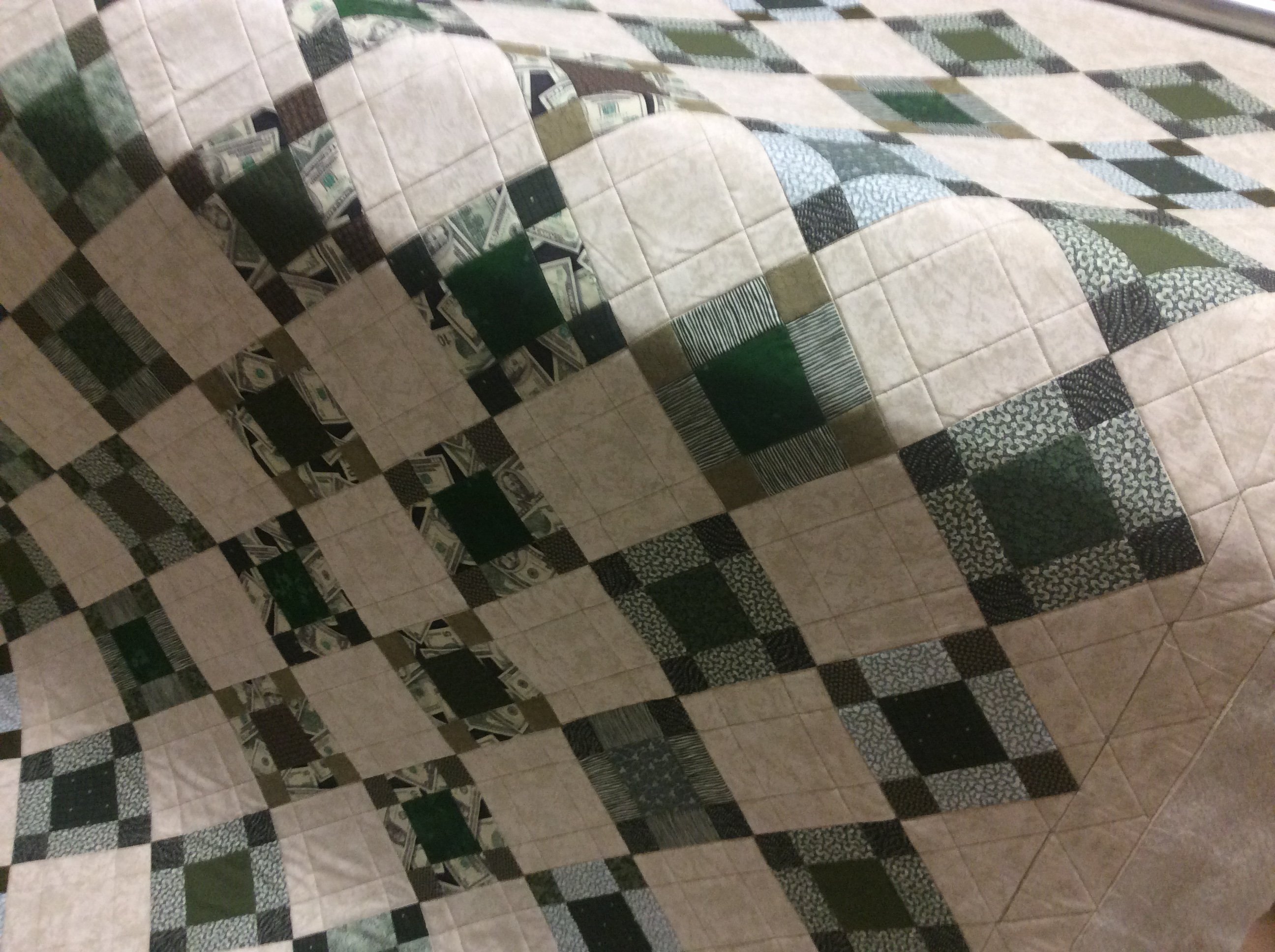 A lap quilt designed for the comfort of DH in his recliner. The first quilt I cut with an Accuquilt cutter.