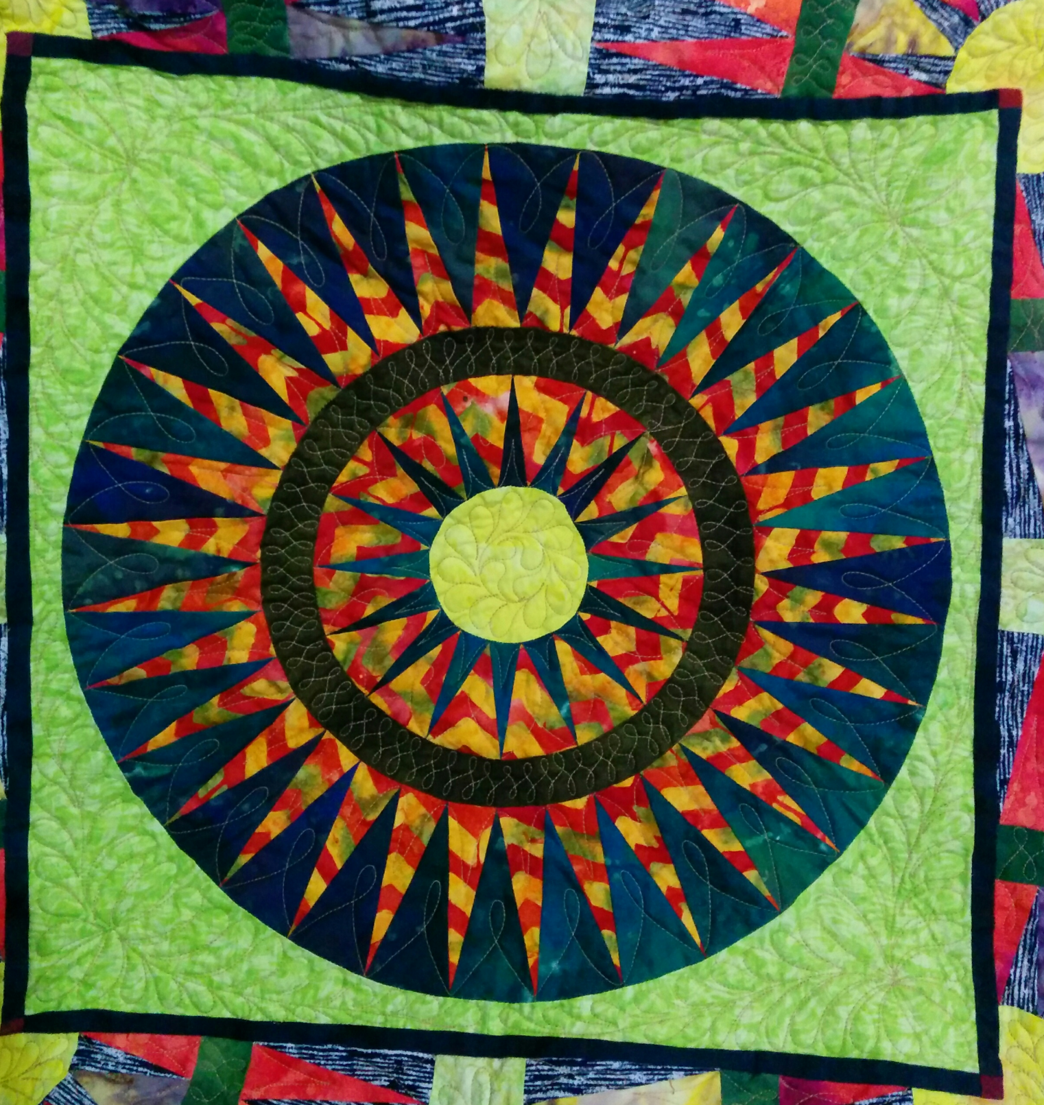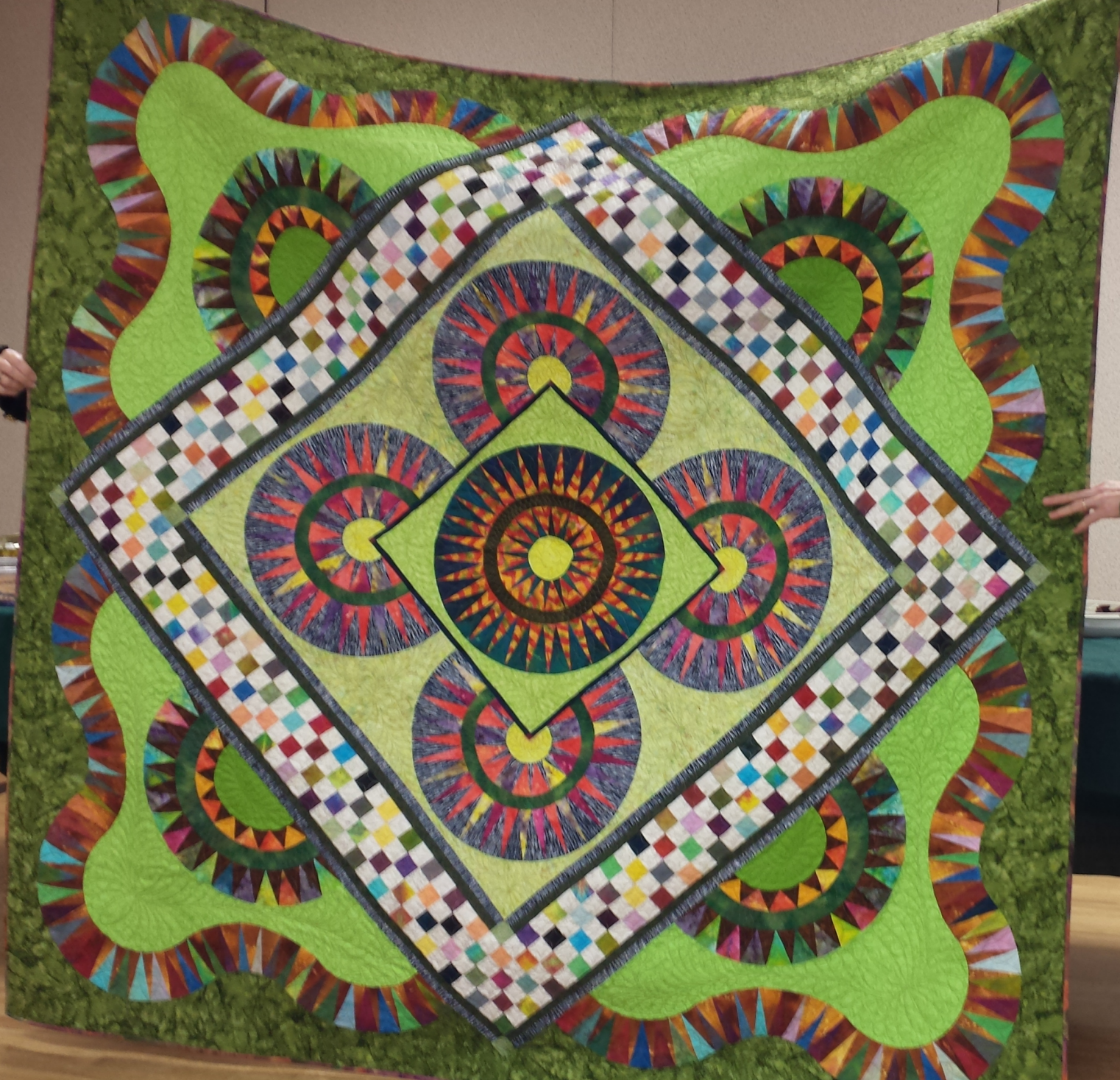 Calypso is my version of Jacqueline De Jong's Brilliant Beauties of Joy quilt. I used my collection of grreen fabrics and a couple of Ricky Tim's hand-dyed scraps packages.