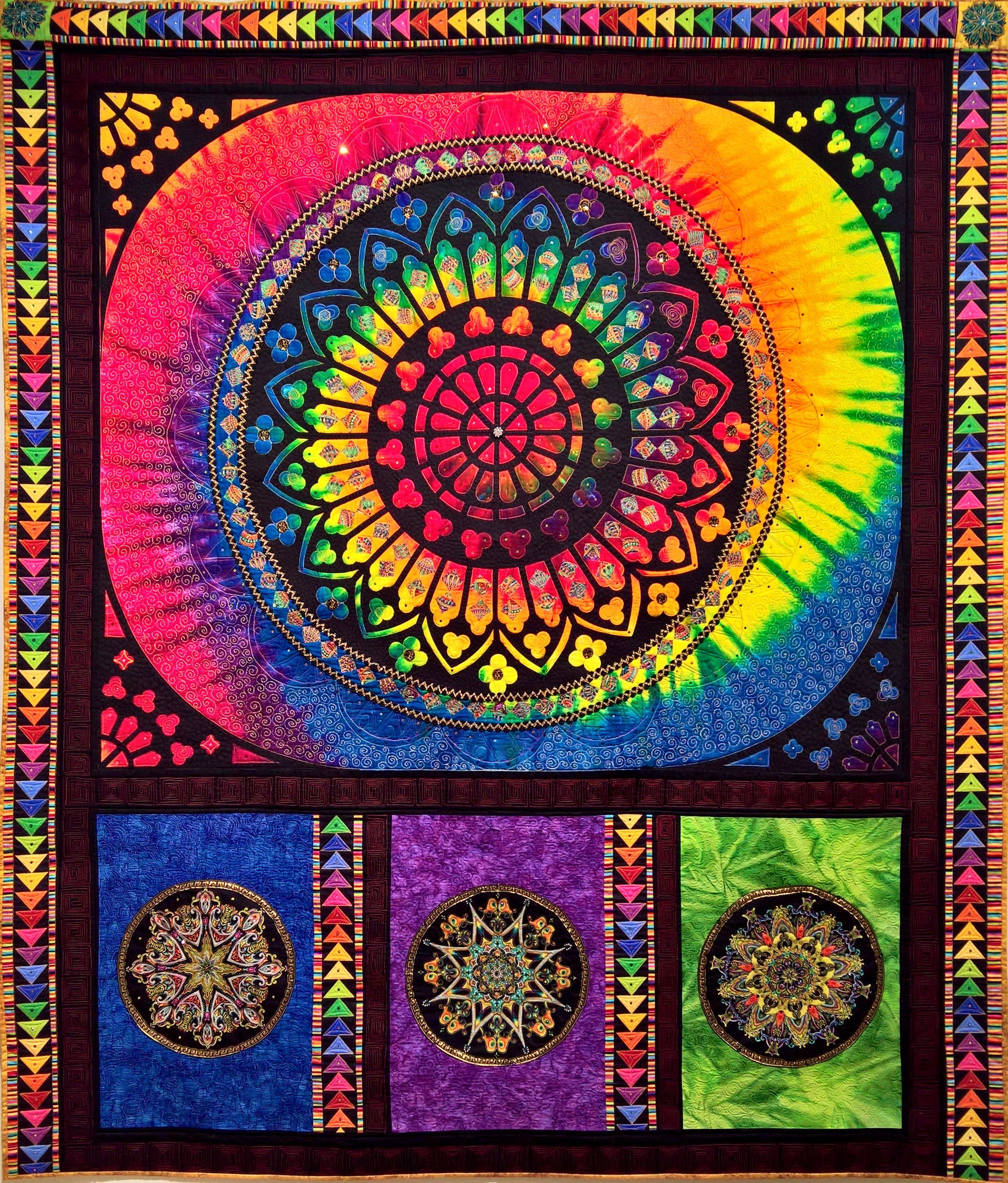 This quilt was three years in the making. The top didn't take that long, though. It was deciding on the quilting that took the most time. I really wanted it to be special, so I built up my free motion skills on other projects and continued to work on it slowly. It was recently displayed in a local art gallery highlighting my Quilt Guild's 25th Anniversary along with other artists' work. I think its my new favourite!