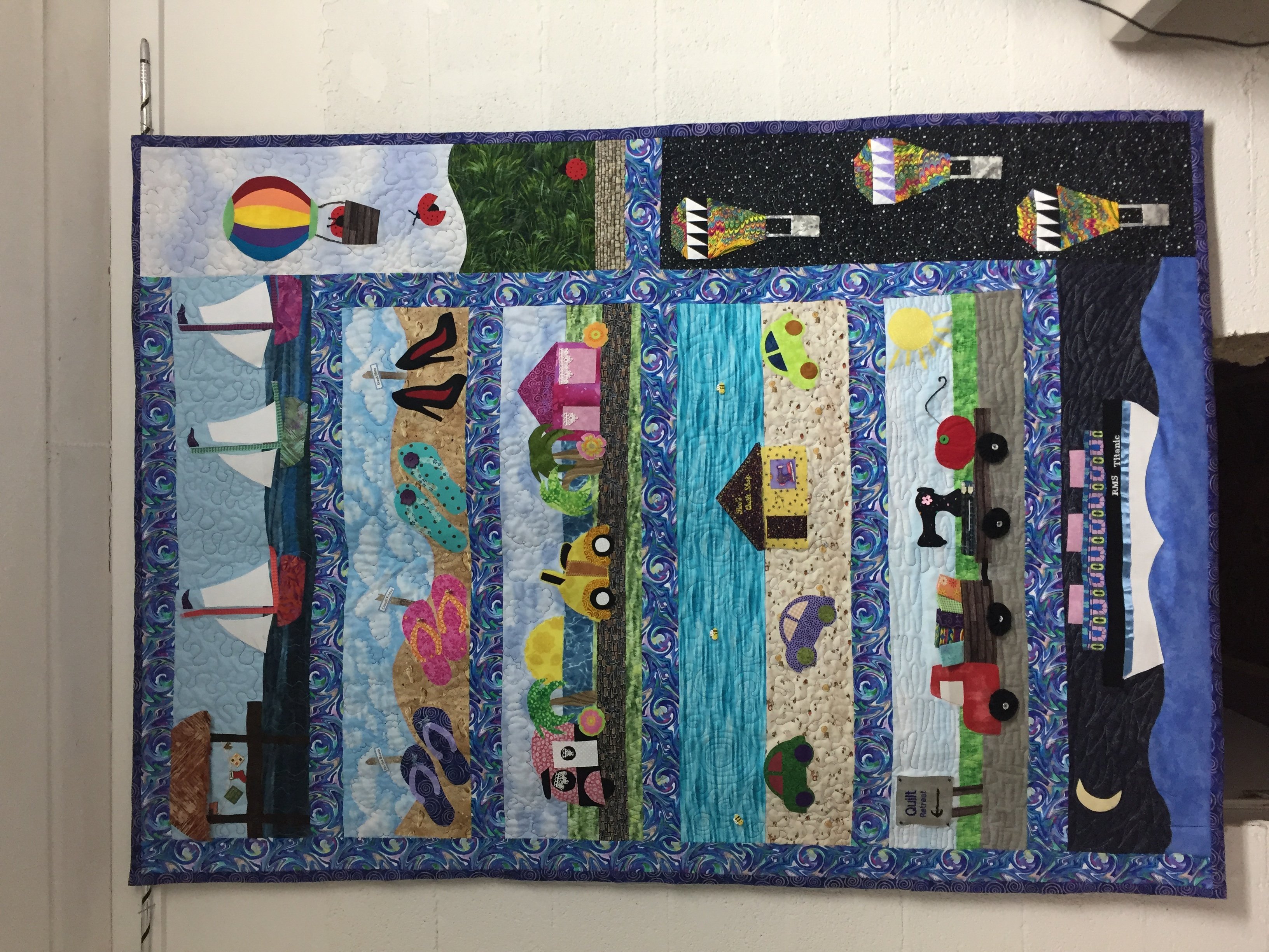 I live in Tavernier, the Florida Keys, and my parents live in St. Augustine. Last summer when we made the trip up to see them we stopped at 9 quilt shops participating in the Row by Row Experience. I recommend to every quilter to do this at least once. It was so awesome to see all the different ideas and shopping in each store was a dream.When we got home I started immediatlely and made my largest quilt yet. I free-motion quilted each row a little different and just wanted to share my results.