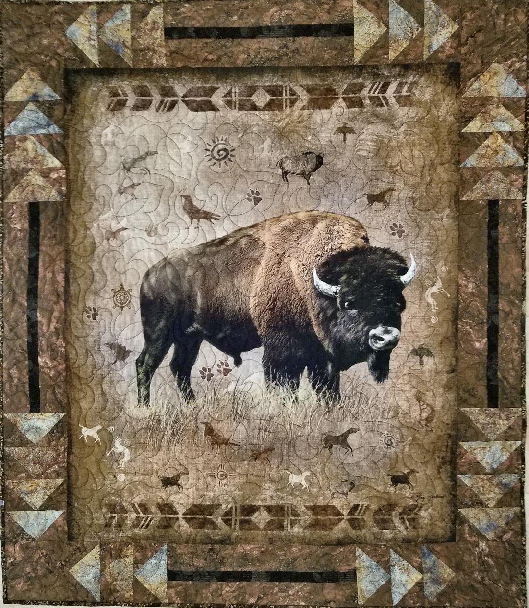 I made a quilt for a friend going through medical treatment. She likes bison and archaeology, and this bison panel seemed perfect, so I purchased 2 panels. I wanted to create borders that would augment the design, but not take away from it. I made this second quilt for myself. While not complex, it shows how you can use a panel to create a quilt by adding interesting borders.