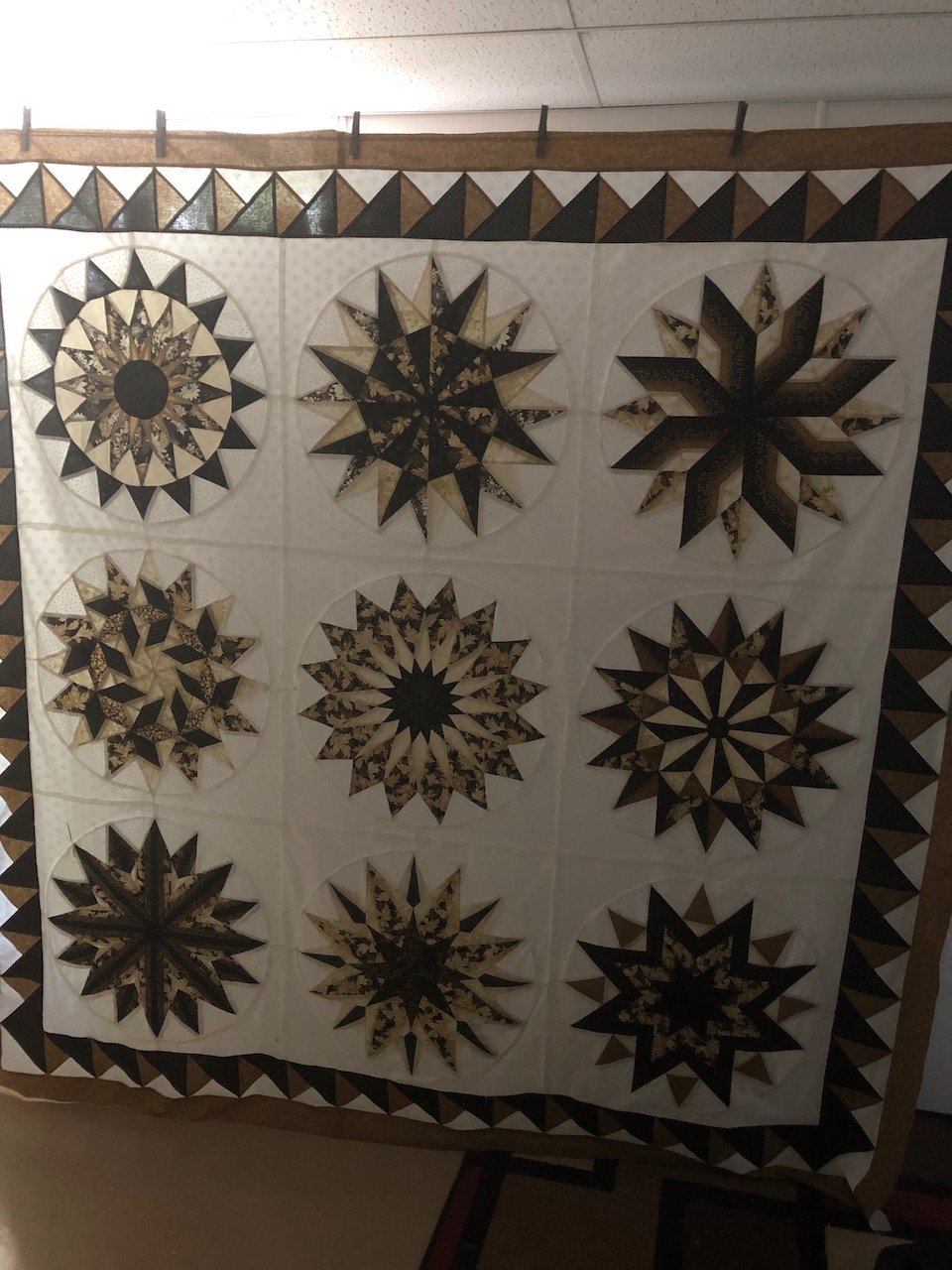 Hi, So happy to get the last instructions for the block of the month. Love this pattern by Becky Goldsmith. I just didn't have the energy to do all that applque.Just finished the flimsy, now on to the quilting.