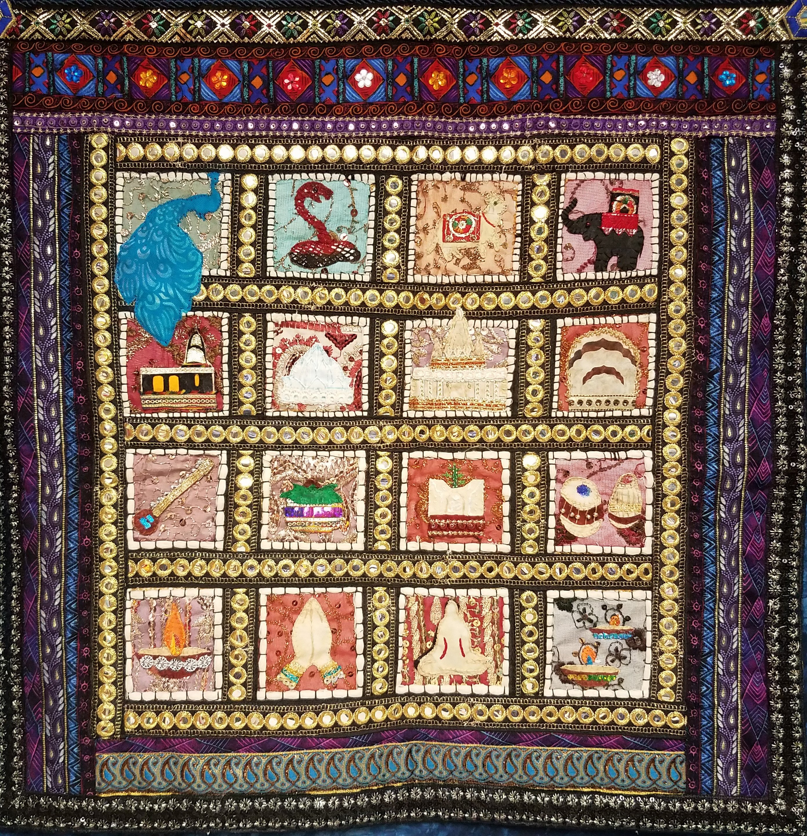 A Journey to India was made for an International Miniature Quilt Exchange with Jean Ameduri of St. Louis, Missouri. I met Jean at the International Quilt Festival in Houston last November while admiring The Quilt Show's special exhibit of The International Miniature Exchange.  Jean has done over 300 exchanges!