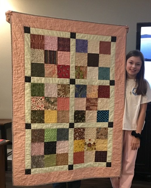 Payton is 11 years old and completed 95% of this quilt on her own, minus cutting, lol. She learned a lot about color value and contrast, precision piecing and quilted her creation on Nana's Innova Longarm. She used a machine finished binding. Her label says: Payton , 2019 and....Let's "taco" about this Amazing Quilt.! I am very proud that as she was stitching the binding she mentioned that it was wonderful to do the quilt and a little sad that it was finished.