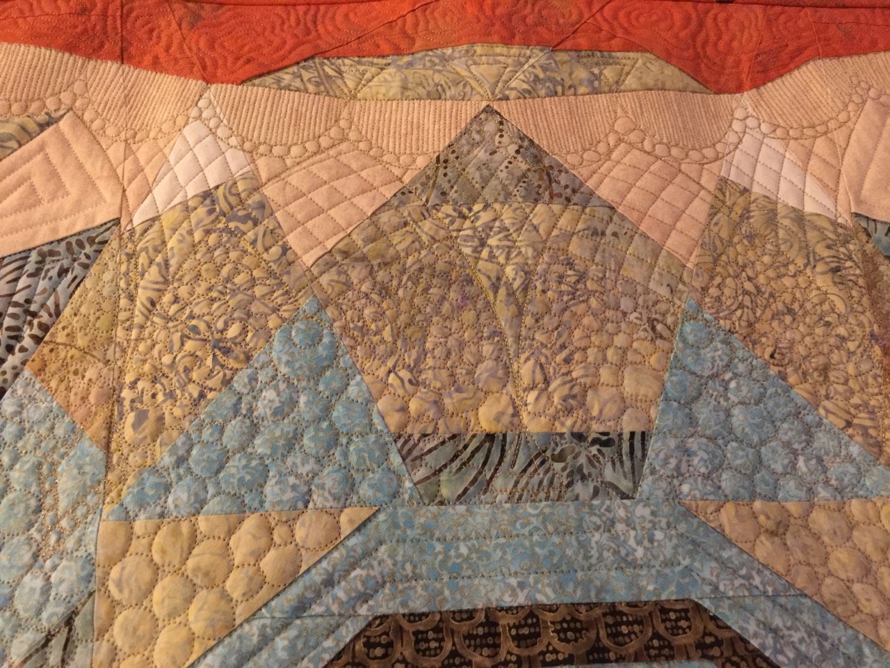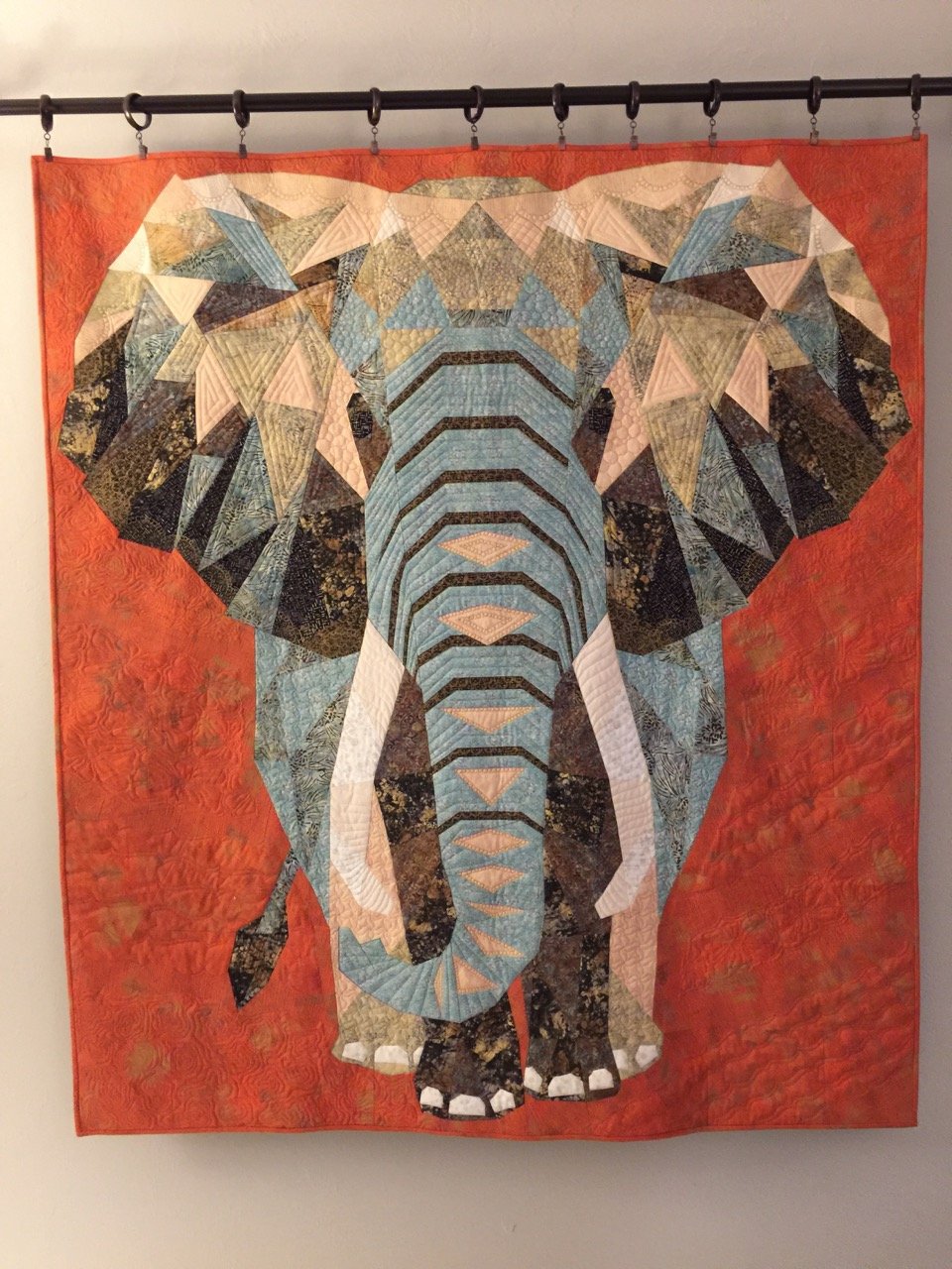 StellaThis is my version of Violet Craft's "Elephant Abstraction" . I had lots of fun piecing and quilting this one. Metallic thread helps give Stella some "jewelry" on her trunk and ears.