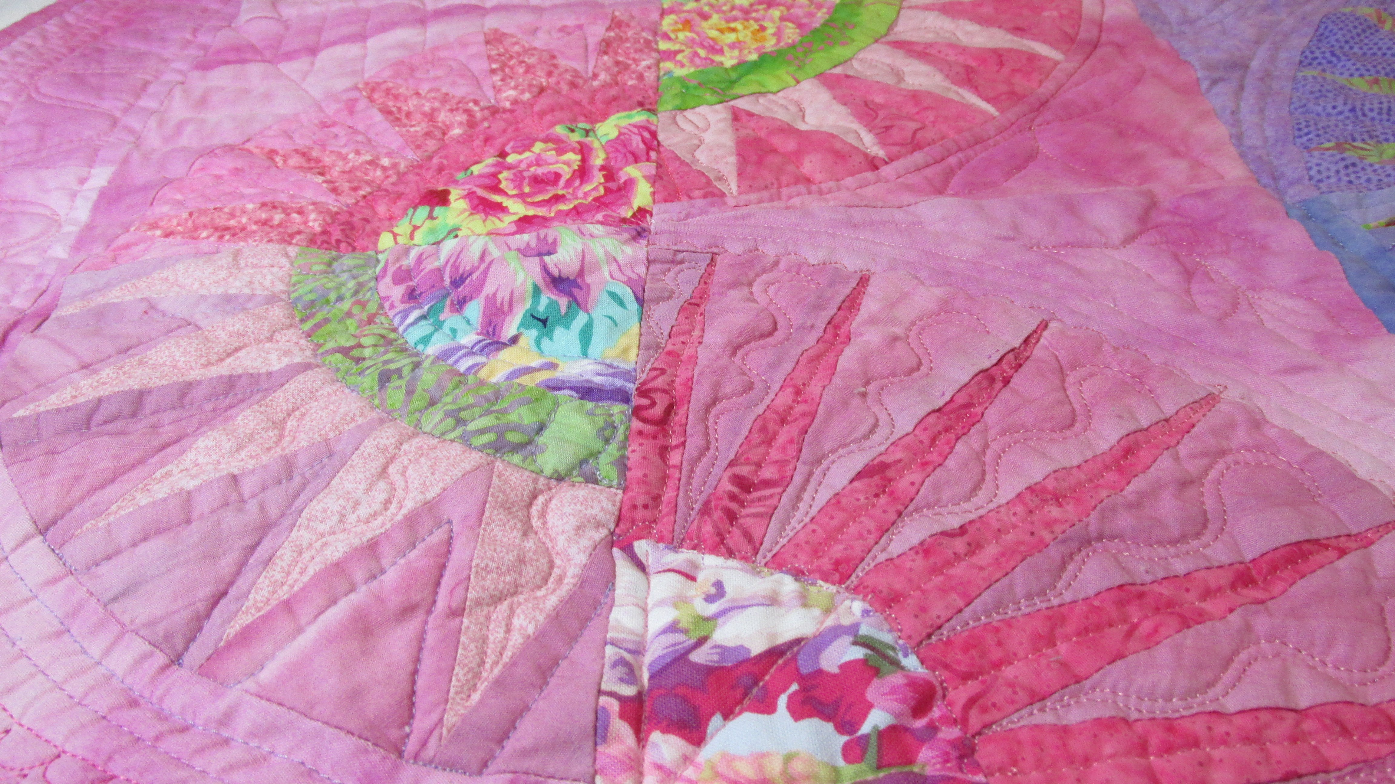 All hand painted fabrics. I used embroidery threads for the all over quilting designs.