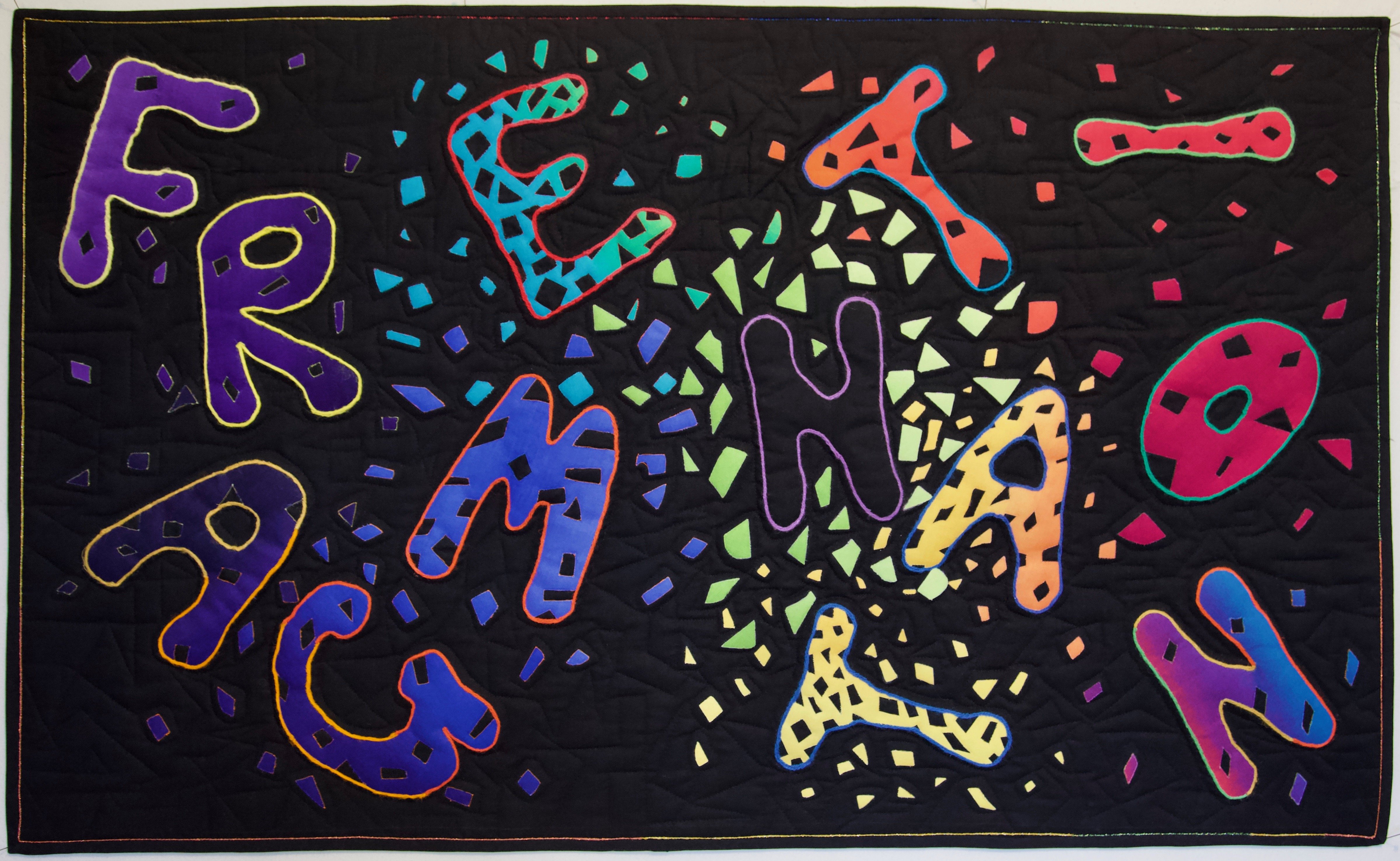 This was made for the Fragmention challenge of the Contemporary Quilters groups of Quilters Guild of the British Isles. Words are central to our lives. They instruct us, describe out thoughts and environment and communicate with it and others. They can be the harbingers of joy or sorrow.