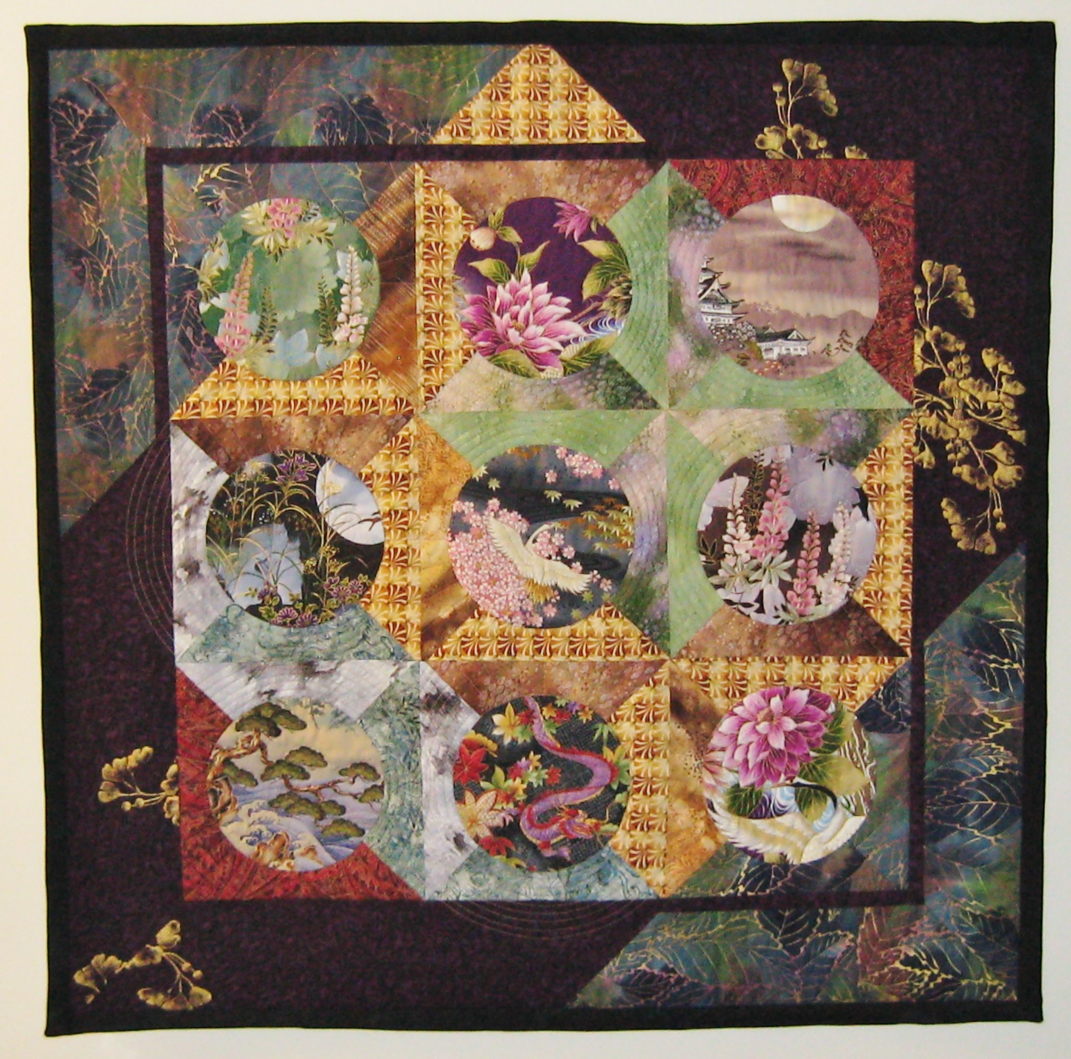 My Oriental GardenCotton fabric, machine pieced and quilted with walking foot and free-motion, cotton batting.