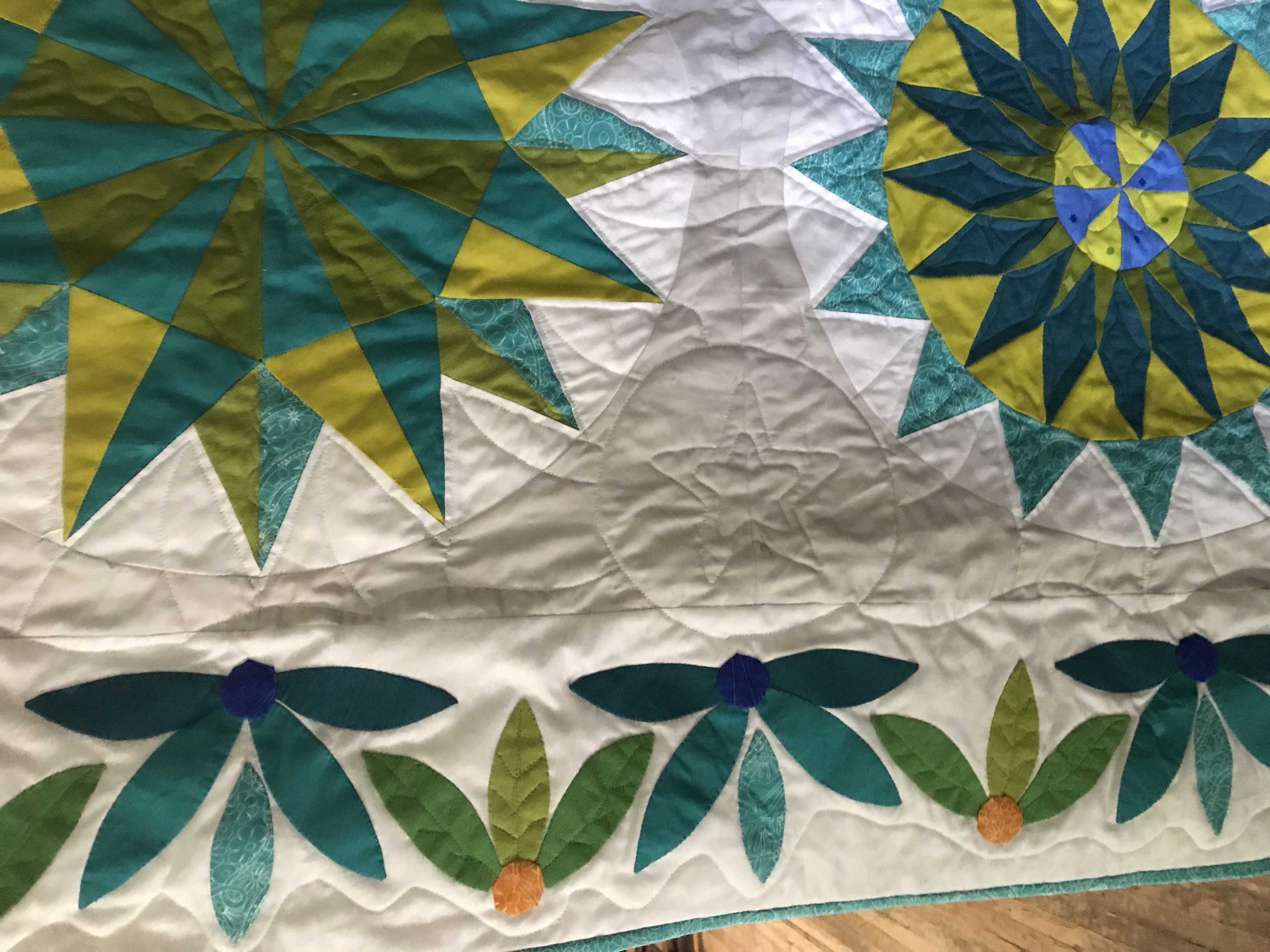 BOM 2019I finally finished quilting the block of the month 2019 quilt . I had the top down in December but was trying to get used to my Bernina Q 20. I think I did OK with the quilting.