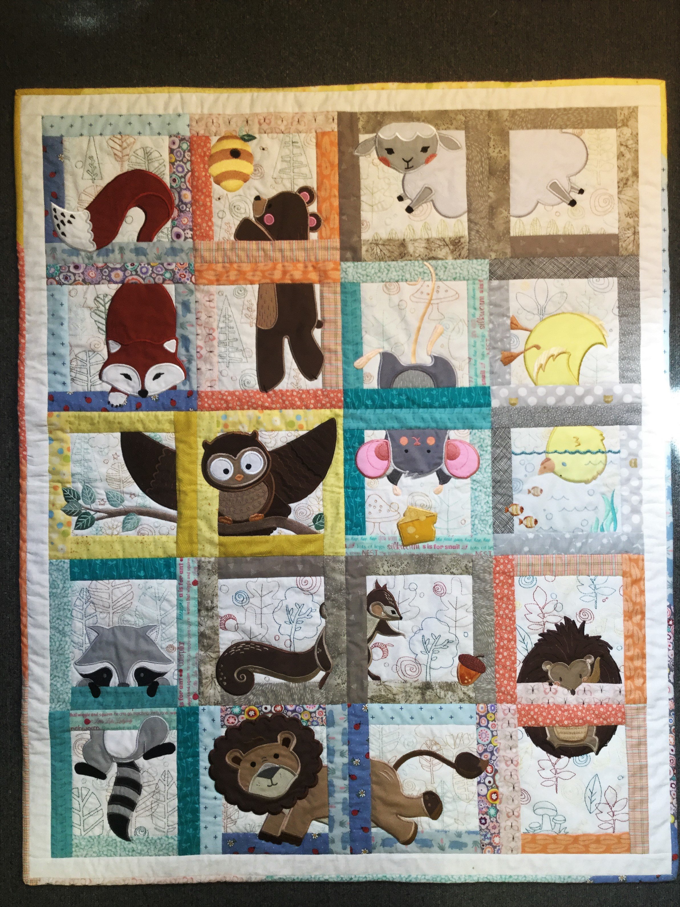 A baby quilt Made for a friend of my son's done using Anita Goodesign machine embroidery designs.