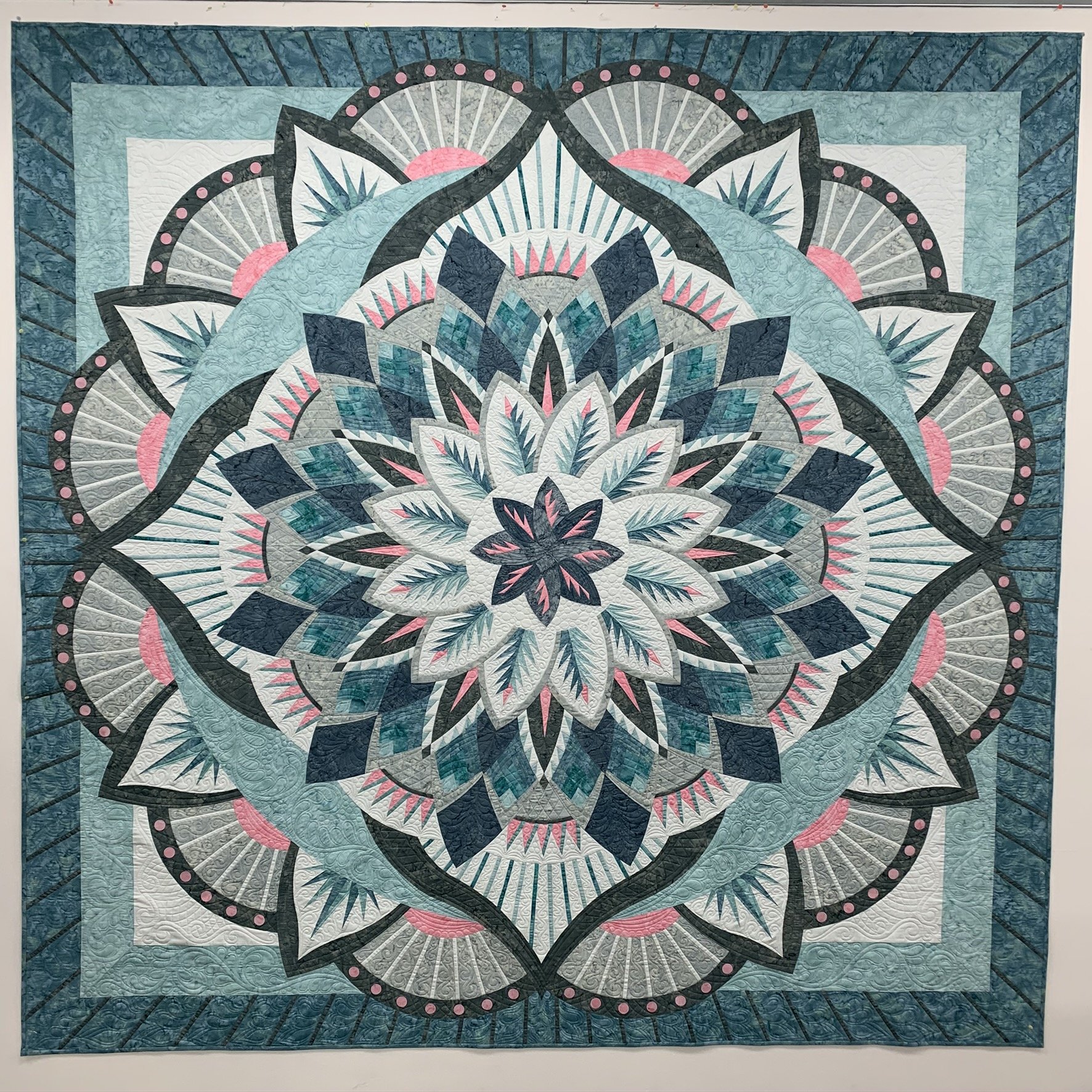 I gifted this to my daughter for the completion of her Master's Degree. I never made her Undergraduate Degree quilt, and every time she saw this she said how much she liked it... so it became hers! I took this in a class about a year and a half ago, completed a couple months ago.
