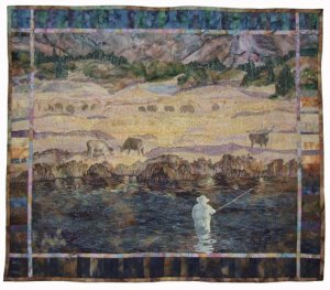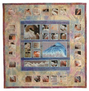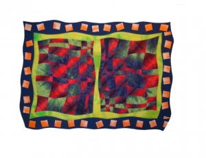 Log Cabin - 25 1/2 x 25 1/2 quilt made for the Country Cabin directions in the Little Quilts All Through The House by Alice Berg, Mary Ellen Von Holt and Sylvia Johnson. Fun to make using scrap fabrics, lap quilted easily without a hoop. One of the log fabrics has faded greatly over time. It does, however, sit in a sunny spot near a window, beneath a Singer Featherweight.