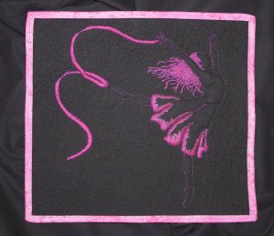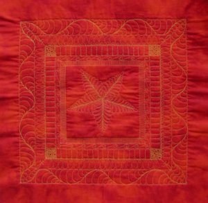 Embellished Tote bag - I made the front of this tote bag in the style of Carol Ann Waugh's work. I curved pieced my hand dyed fabric then embellished it with cords, yarns, bobbin work with Razzle dazzle thread, the various fancy stitches on my machine, hand embroidery and beading and free motion machine quilting. It was fun to just let loose!