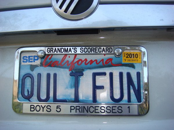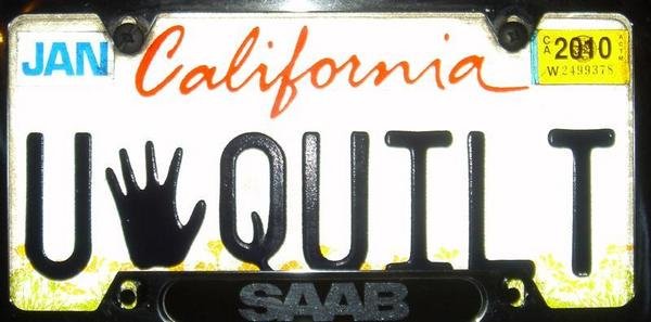 Enter your chance to win a TQS Goodie bag by sharing a photo of a "quiltie" license plate. The winning license plate will be selected by ARJJ and announced in the February 5, 2010 Weekend Fun Newsletter.