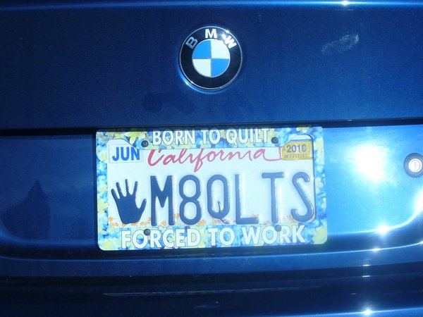 Enter your chance to win a TQS Goodie bag by sharing a photo of a "quiltie" license plate. The winning license plate will be selected by ARJJ and announced in the February 5, 2010 Weekend Fun Newsletter.