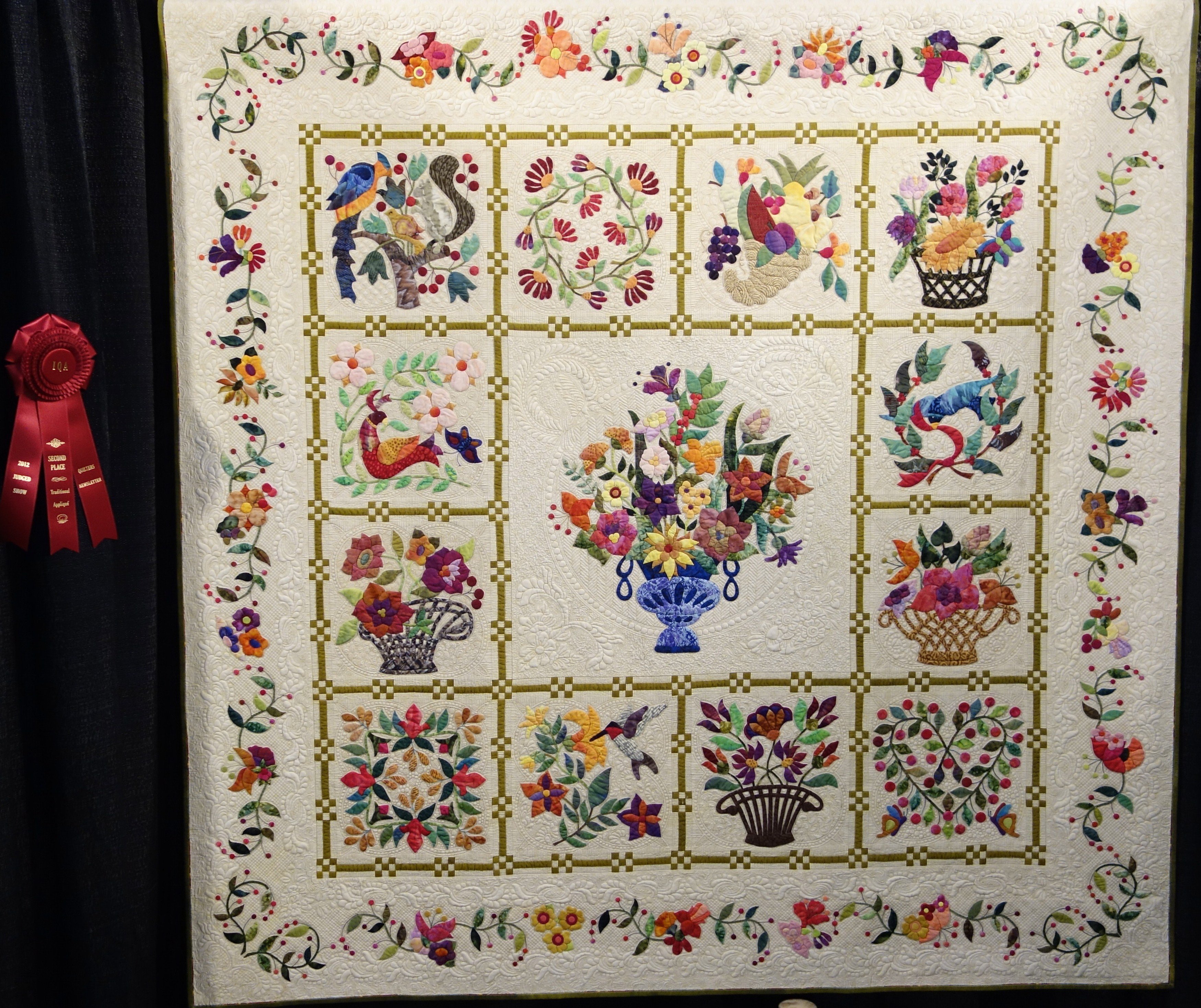 My Journey to Baltimore is Lois Podolny first Baltimore Album quilt. Lois is featured in Show 1907: Machine Quilting Friends along with her friend, Nancy Arseneault.