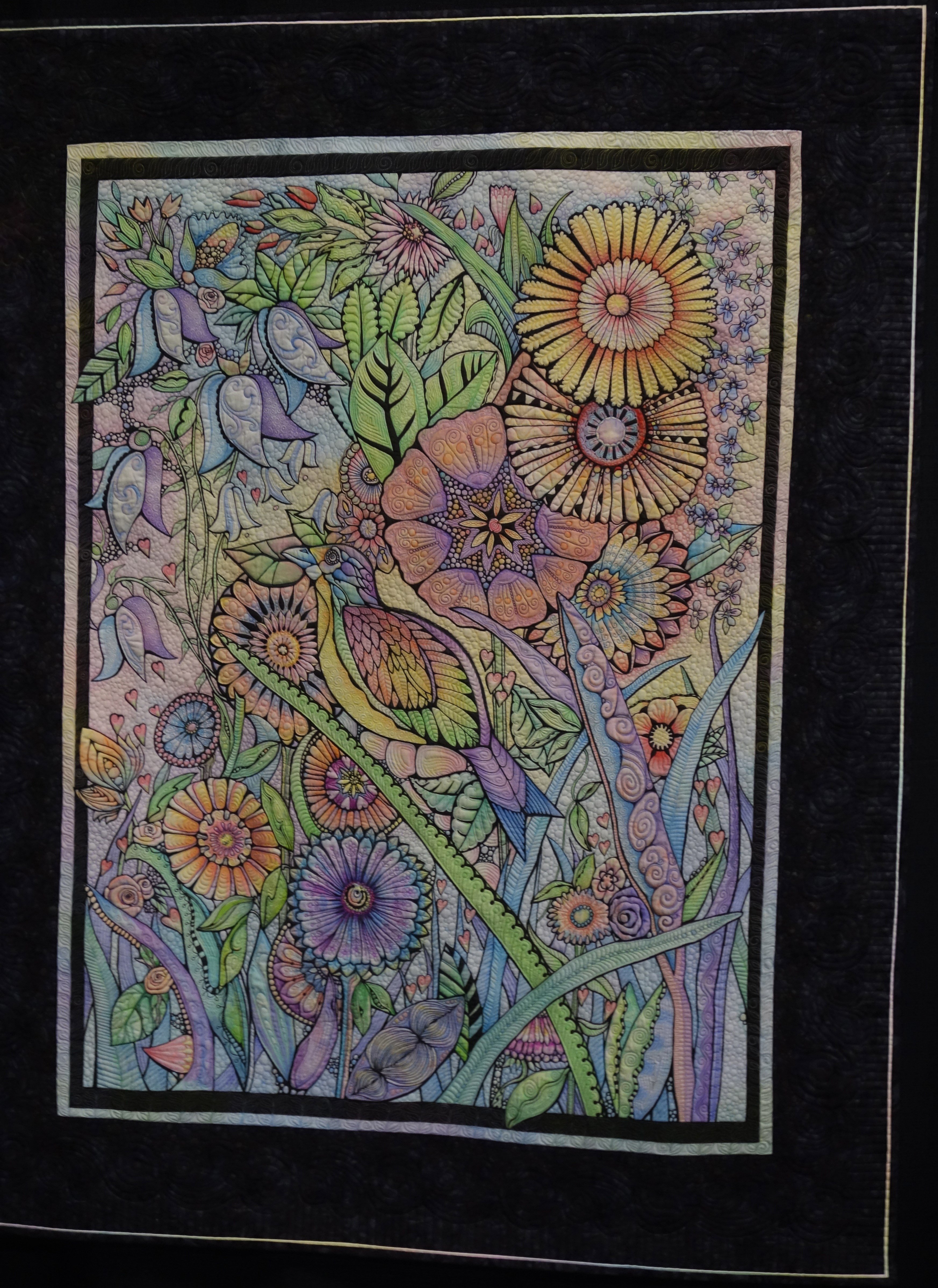 Doodle Bird 2 was created by Joanie Zeier Poole and Pam Levenhagen. It won 2nd place at AQS Lancaster 2015 Wall Quilts – 1st Entry.