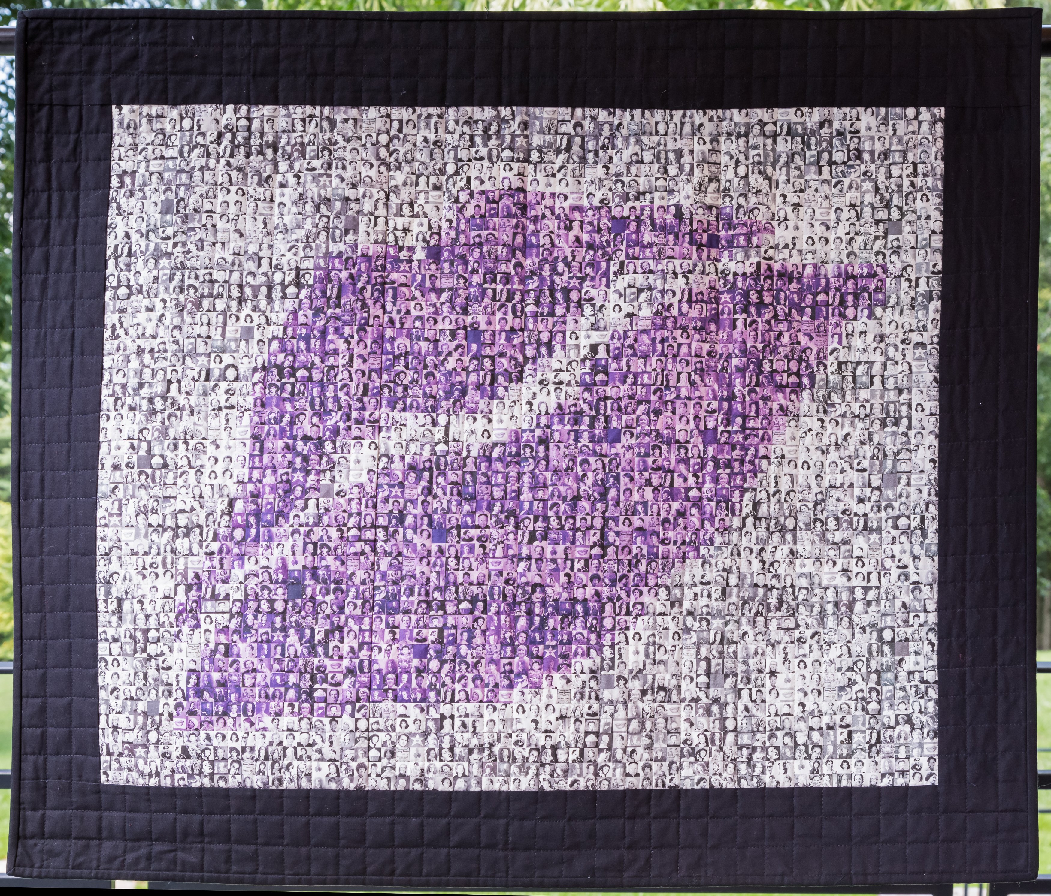 Half-inch square images of notable women come together in this celebration of women’s wit and wisdom. From a distance, the viewer sees a set of purple or red ready-to-kiss lips. Up close, women’s faces emerge…from Abigail Adams to Annie Oakley, from Hillary Clinton to Judge Judy.