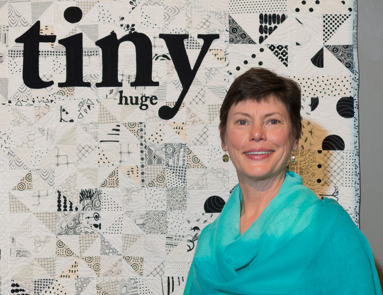 Posts On: August 31, 2015Louisa Smith loves creating designs, and especially tessellations. She is fascinated by the work of M.C. Escher, and she demonstrates how to make one of her patterns, the Curved Diamond Footwarmer, also called the “Tootsie Toaster,” which is derived from a tessellating curved hexagon. Her footwarmer pattern is being made available as a free gift to TQS members. Louisa also loves Dupioni silk, and currently works mostly with the lustrous fabrics. Louisa, who was a guest on TQS previously (Episode 204), shares a fun new technique she calls “Double Vision,” which came to her while doodling during a car trip. Louisa uses the “Hugs and Kisses” pattern elements (circles and diamonds) to illustrate her new technique. She discusses both fused and pieced options. Also during the show, Ricky shares some ideas for basting quilts.