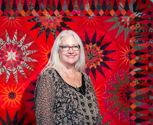 Posts On: March 16, 2015It’s amazing what happens over the course of 200+ TQS episodes! Designer and teacher Cindy Needham was a guest on Show 202 and she returns to show us how her work has developed. She reviews her past quilts, which incorporate and highlight the handwork of antique linens, and then she shares her most recent projects. She also creates stencils, and demonstrates how they can help you fill whatever design space you need. She offers tips for turning simple quilting designs into stunning works of art. Lastly, Cindy gives expert advice on selecting threads to match antique linens. Traveling to warmer climates, TQS visits with whimsical quilter Bari Ackerman in her Scottsdale, AZ studio. Bari is a fabric designer, author, and designer of home décor wall stencils. She will demonstrate her creation of fabric collages.