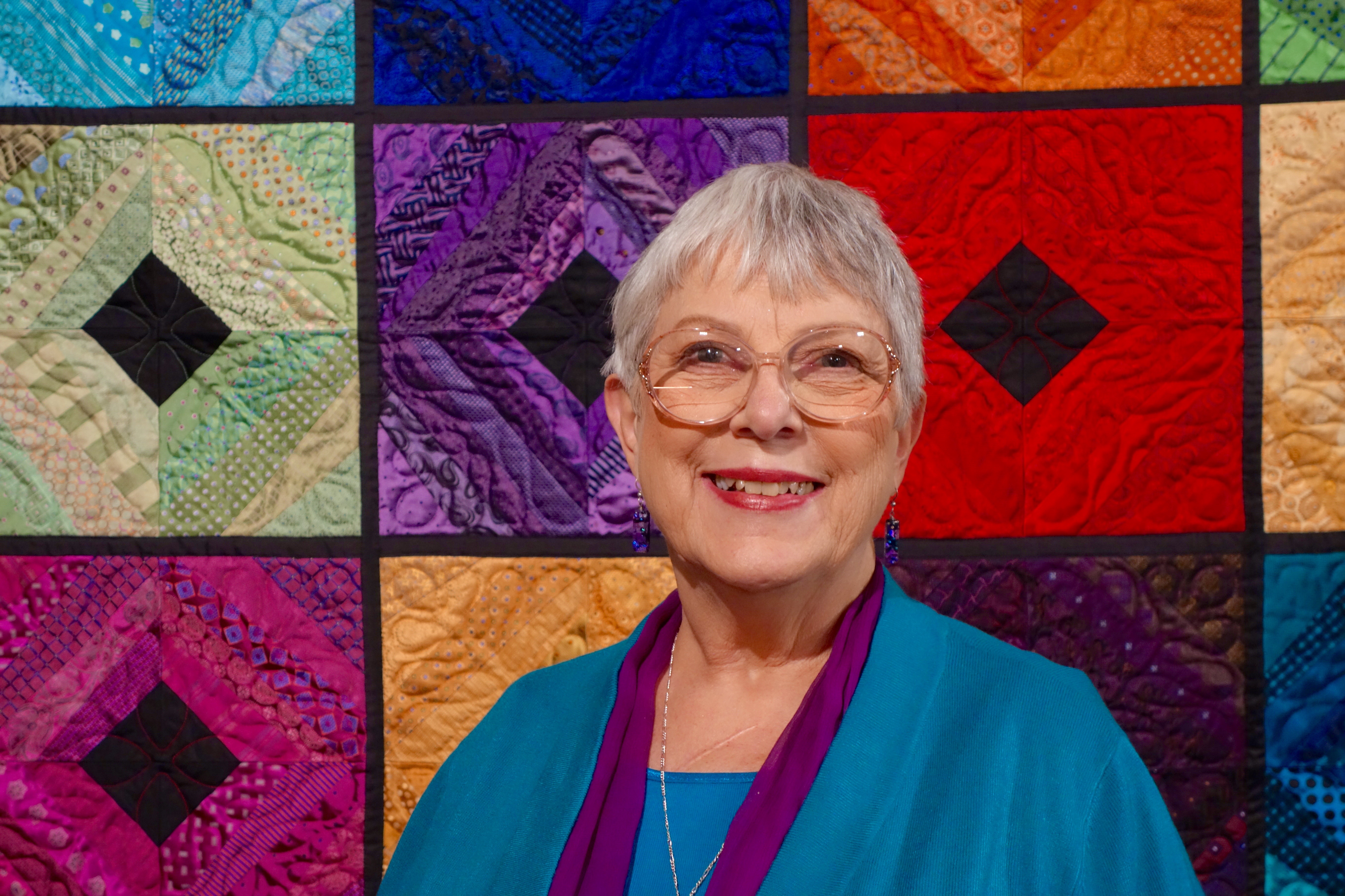 We're kicking off our 2000 series with another fabulous Block of the Month designed by Sue Garman. Sue's quilts are designed as skill builders, and who better to teach us the ins and outs for tackling The Halo Medallion Quilt than TQS member and pattern tester Carolyn Hock. Carolyn has made a number of BOM quilts and other featured quilt projects on TQS. From Curved Flying Geese to Delectable Mountain blocks, Carolyn is here to share some terrific ideas for making your own version of the BOM quilt.