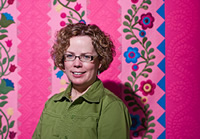 Angie Vogel shows her finished 2008 TQS Challenge quilt